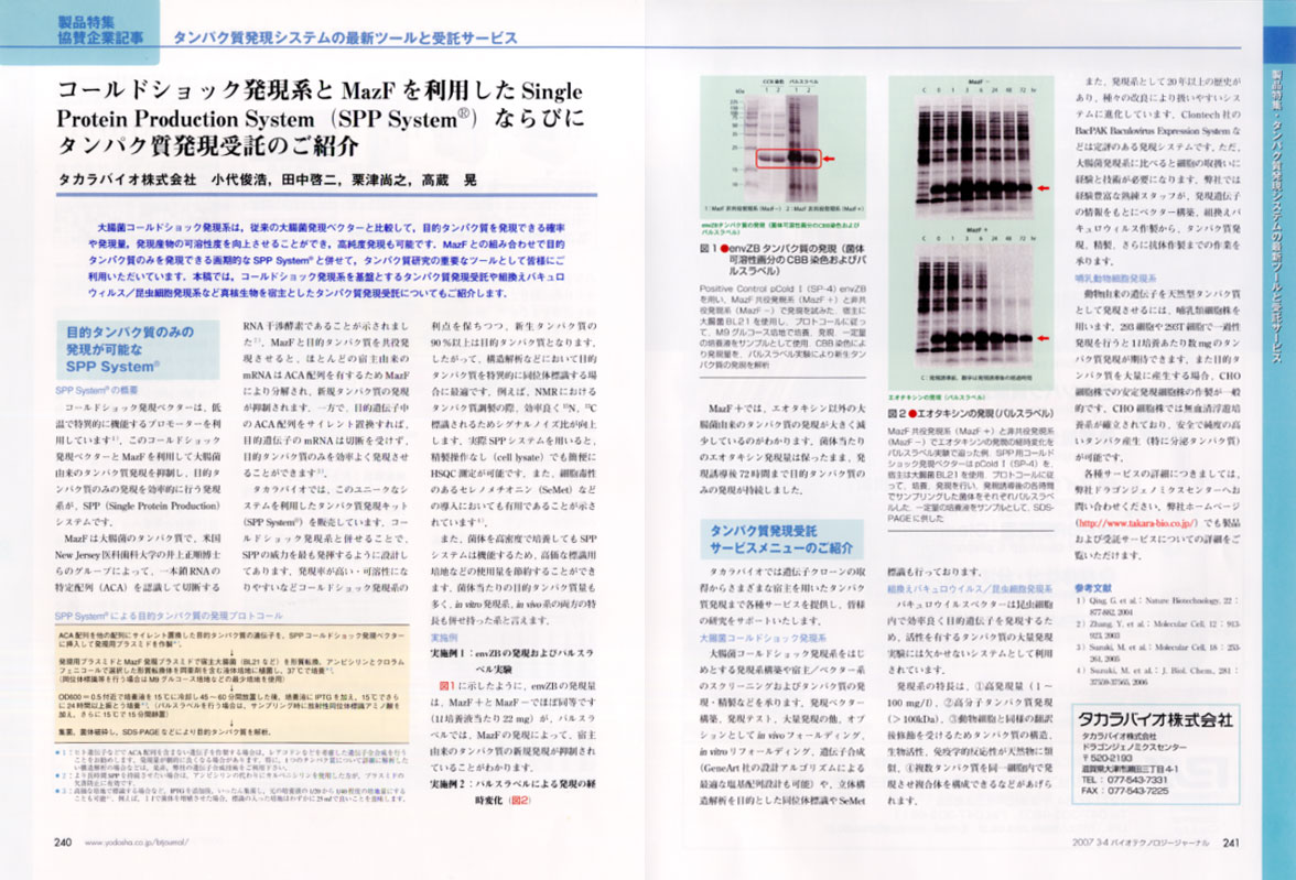 コールドショック発現系とMazFを利用したSingle Protein Production System(SPP Systemu®) ならびにタンパク質発現受託のご紹介」