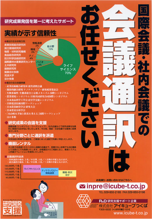 ・研究成果の会議を支援 ・専門分野ごとに通訳を派遣 ・機器レンタル