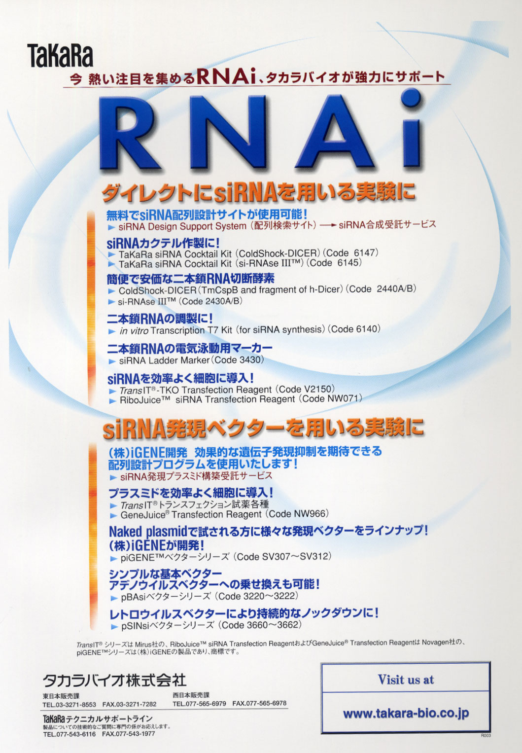 ・ダイレクトにsiRNAを用いる実験に ・siRNA発現ベクターを用いる実験に
