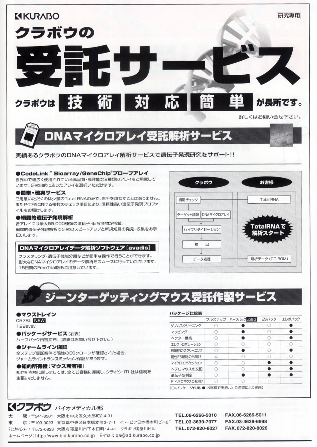 DNAマイクロアレイ受託解析サービス、ジーンターゲッティングマウス受託作製サービス