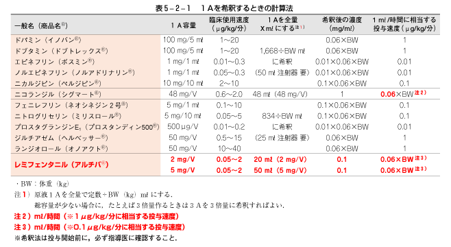 ※ニコランジルの投与速度の修正及び「レミフェンタニル(アルチバ®)」の追加,注の追加