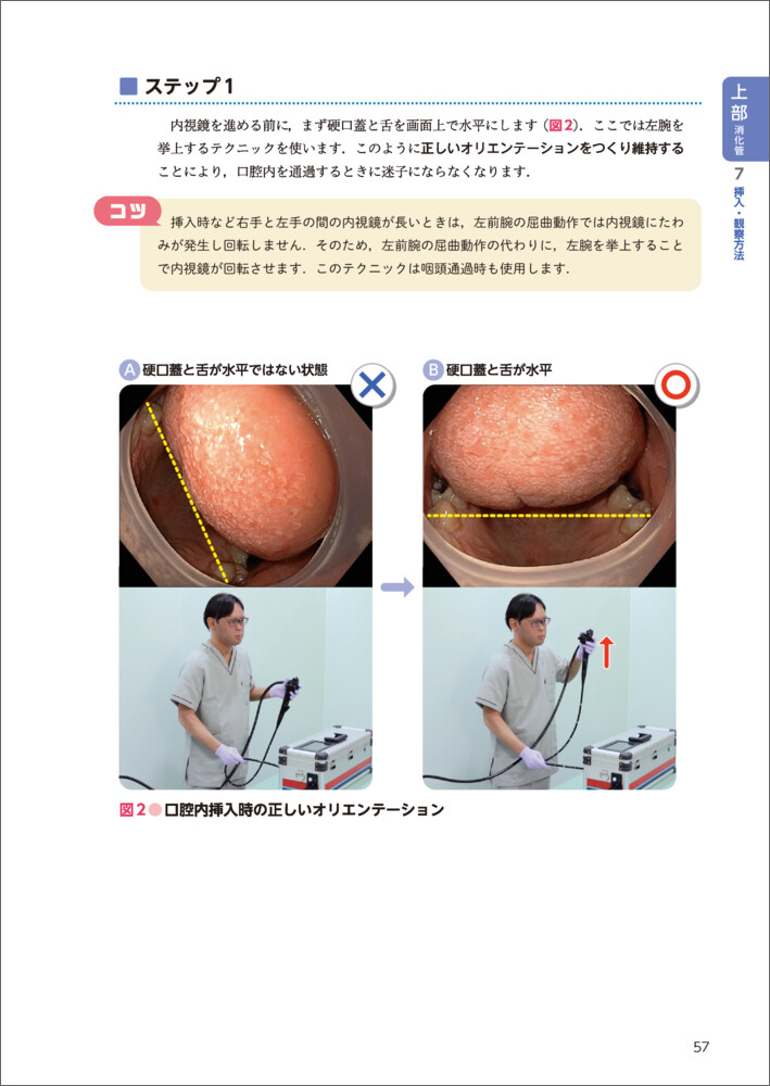 内視鏡をしっかりとコントロールするには,内視鏡の「動きのメカニズム」を理解することからはじめましょう.内視鏡の動きは,「前後動作」,「回転動作」,「上下左右アングル動作」という3つの動きから成り立っています(図1).…