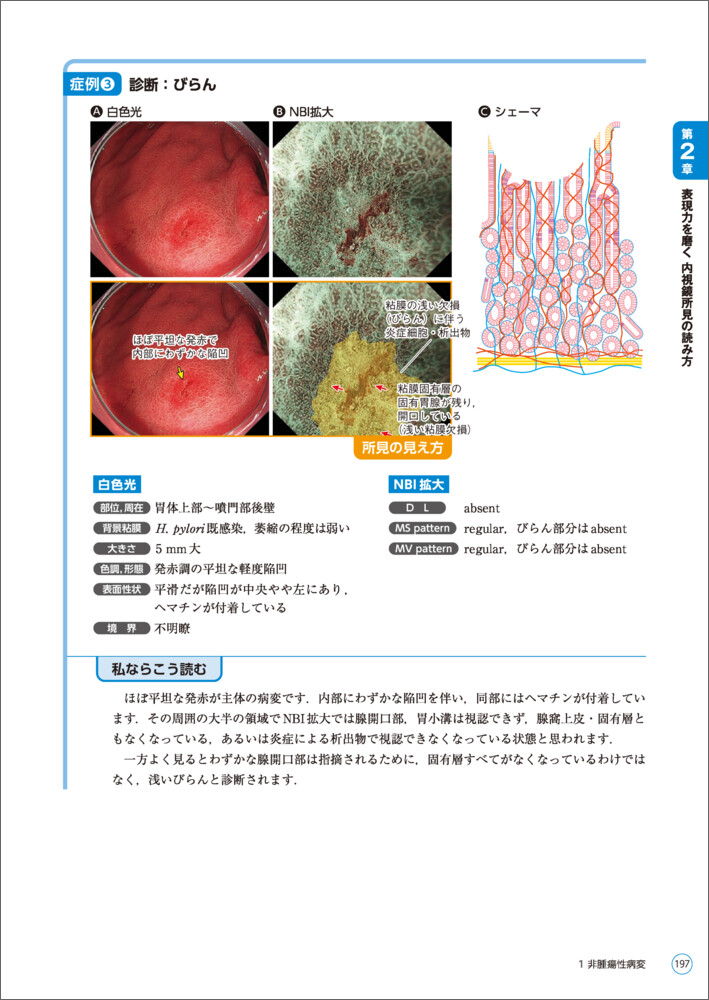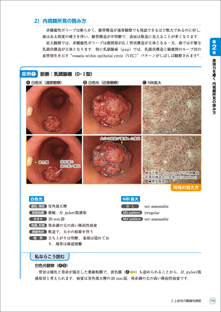 「内視鏡所見をどう表現すればいい?」「この所見の本質は何?」と悩んだ経験はありませんか? 本書では「胃内視鏡像を正しく観察し,適切に表現し,的確に診断するプロセス」を体系的に解説し,白色光とNBI拡大における着眼点・読影のコツを凝縮しました.胃内視鏡の読影に対する不安を減らし,確かな診断力が身につく1冊です!