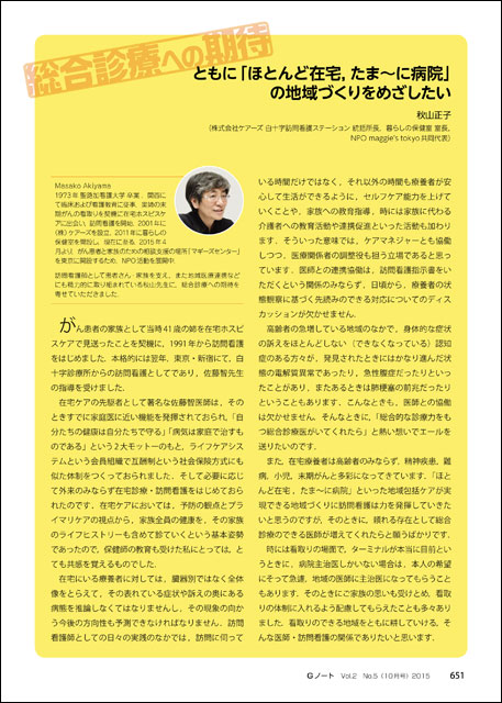 私は現在,緩和ケアを専門としておりますが,総合診療をバックグラウンドとしており,今までも,そしてこれからも,疾患を問わず緩和ケアを実践することを個人の,大学診療科の,そして研修医教育のモットーとしています.