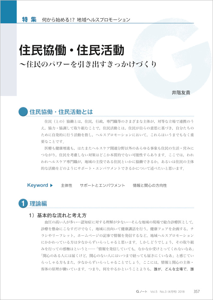 - 【本書名】Gノート:何から始める!?地域ヘルスプロモーション〜研修・指導にも役立つ ヒントいっぱいCase Book