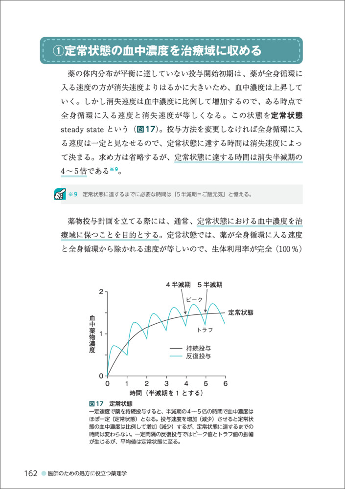 医師が決めなければならないこと/①定常状態の血中濃度を治療域に収める/②必要なら負荷投与、その後は維持投与/③変動があれば、都度修正