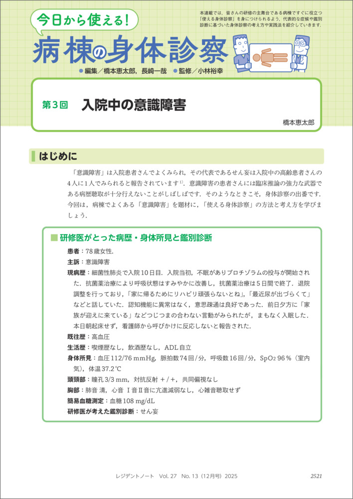 「自分だけでどこまで対応できる?」「皮膚科に相談すべき?」「相談時に伝えるべき情報は?」といった皮膚疾患の疑問にエキスパートが応えます.適切な評価・鑑別・対応・専門科へのコンサルトができるようになるための知識を,現場の共通用語や伝わりやすい所見の表現を含めて解説します.病棟・救急でよく出合う疾患への初期対応が身につく1冊です.