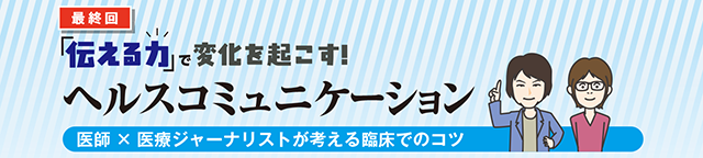 お申し込みくださった方は本webセミナーに関連する過去の連載 “「伝える力」で変化を起こす! ヘルスコミュニケーション” の1話分をこちらから無料でご高覧いただけます。 ※申込み後の自動返信メールに記載されているパスワードの入力が必要です。 (閲覧期限:2020年8月21日)
