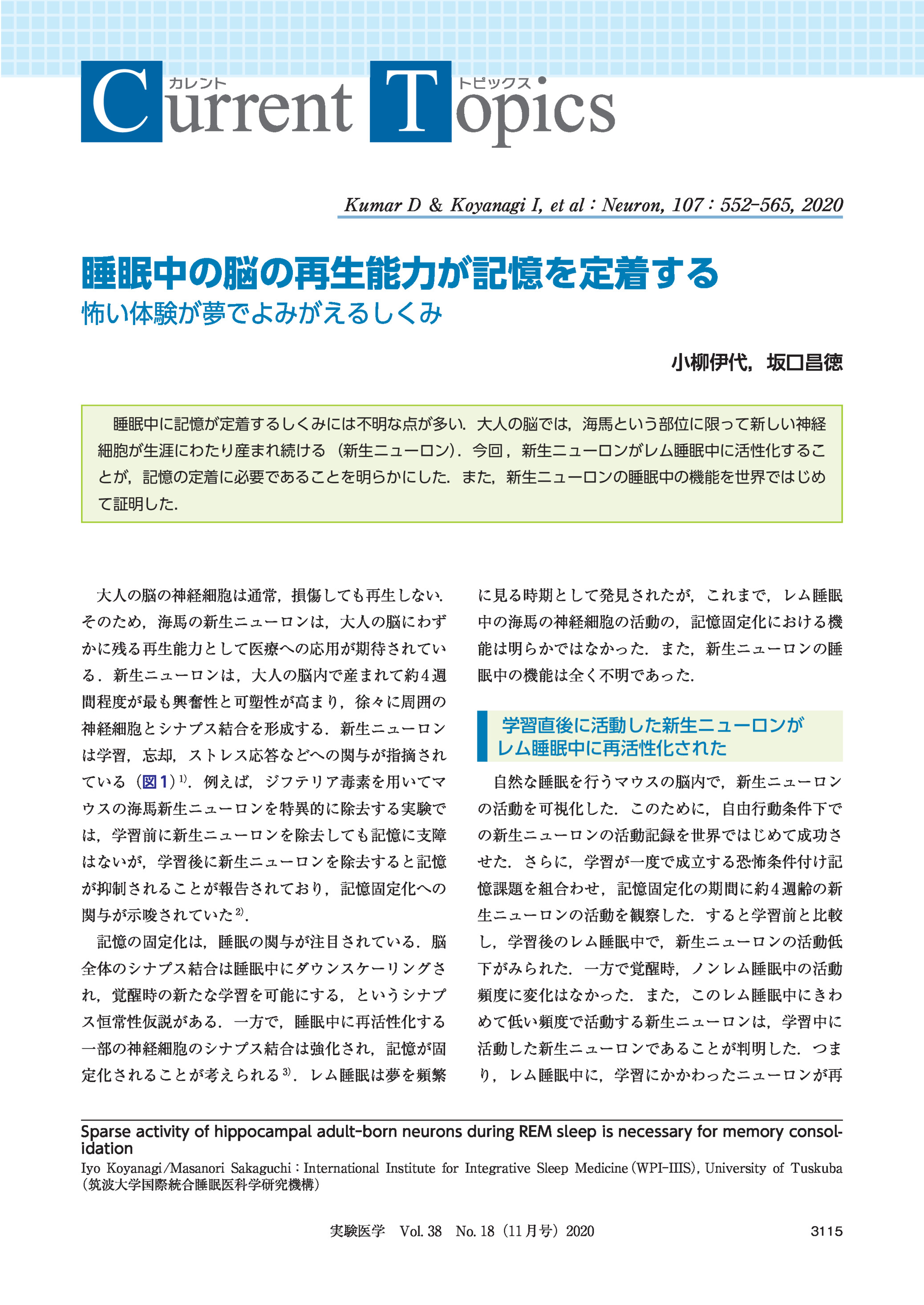睡眠中の脳の再生能力が記憶を定着する:怖い体験が夢でよみがえるしくみ 2020年11月号 トピックス