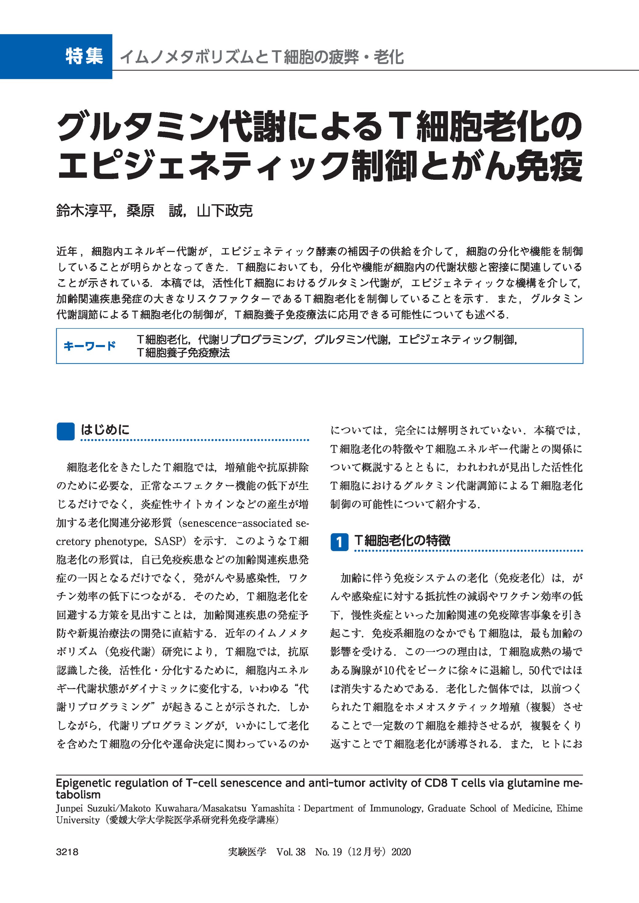 CD8 T細胞は感染症や腫瘍に対する免疫応答で重要な役割を果たしている.慢性感染症またはがんでは,CD8 T細胞は持続的な抗原および炎症性シグナルに曝露され,その機能が徐々に低下する.この疲弊したT細胞は,エフェクターT細胞やメモリーT細胞とは明確に異なった特徴を有しており,細胞内で変化した転写プログラムおよびエピジェネティック・ランドスケープと密接に関連している.慢性感染症およびがんの免疫治療において疲弊T細胞を標的とすることは有用と考えられ,治療法確立のためにはその分子機構の理解が必要である.