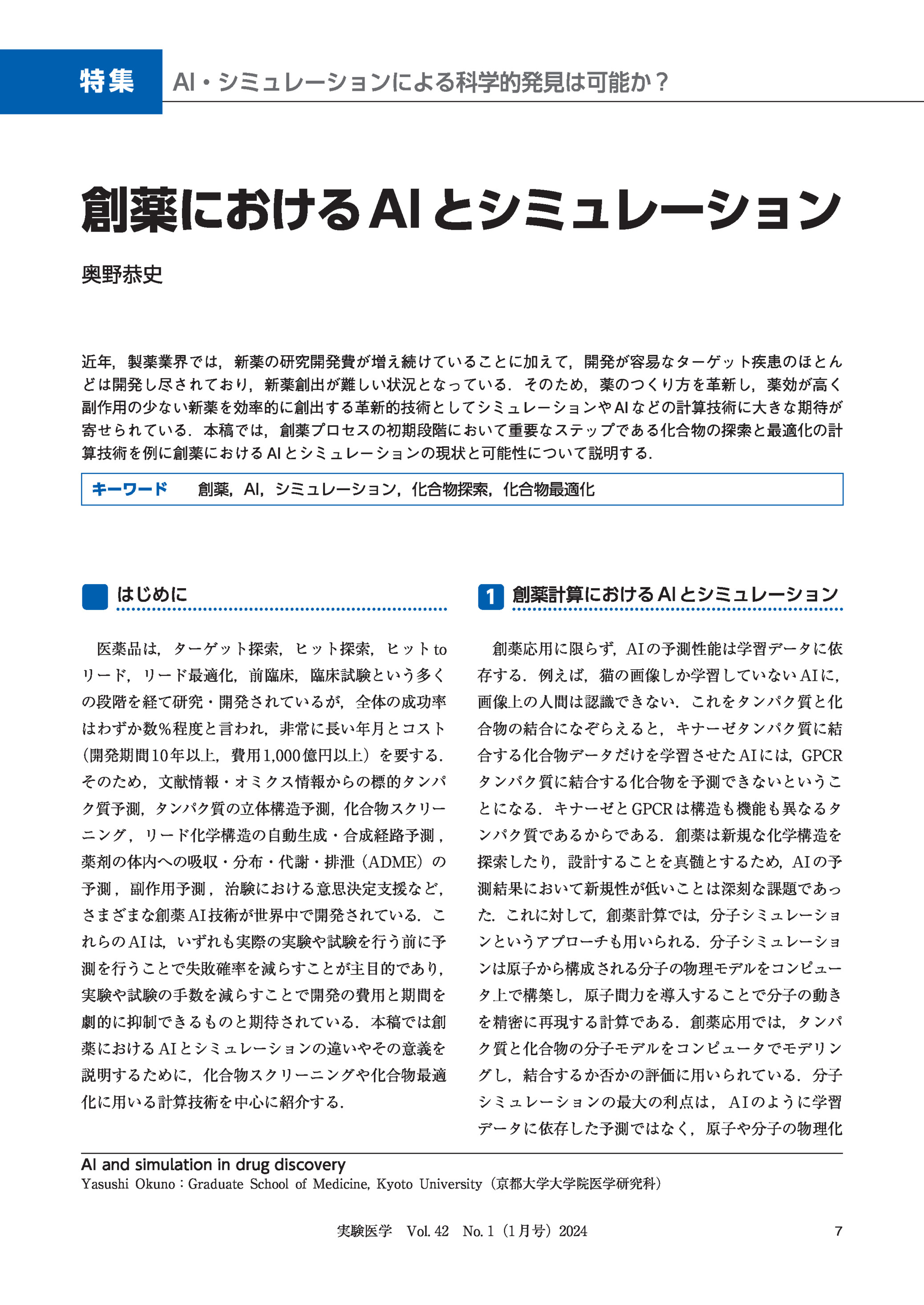 創薬におけるAIとシミュレーション 2024年1月号 特集1