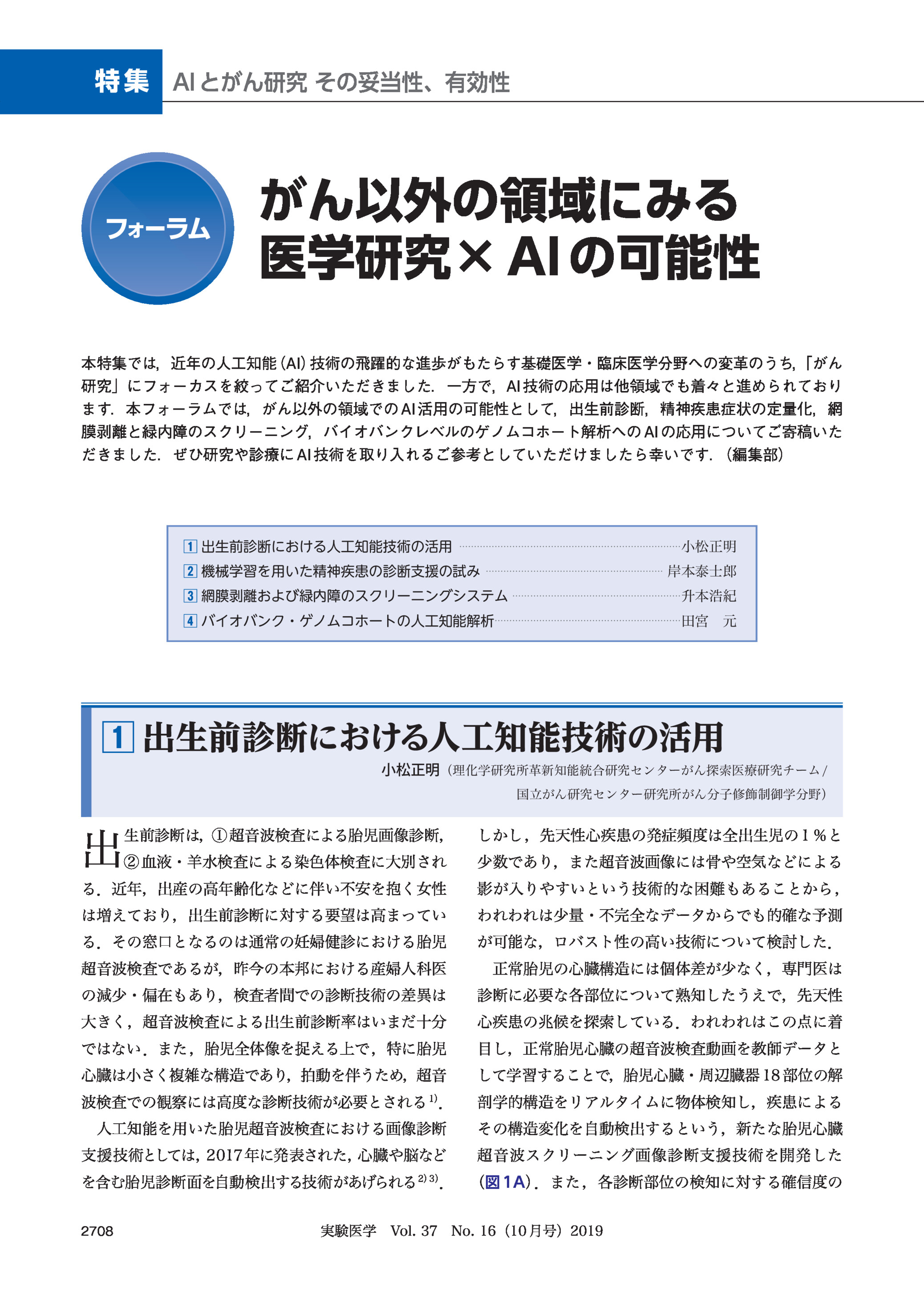 人工知能を用いた臨床ゲノム解析 2019年10月号 特集1