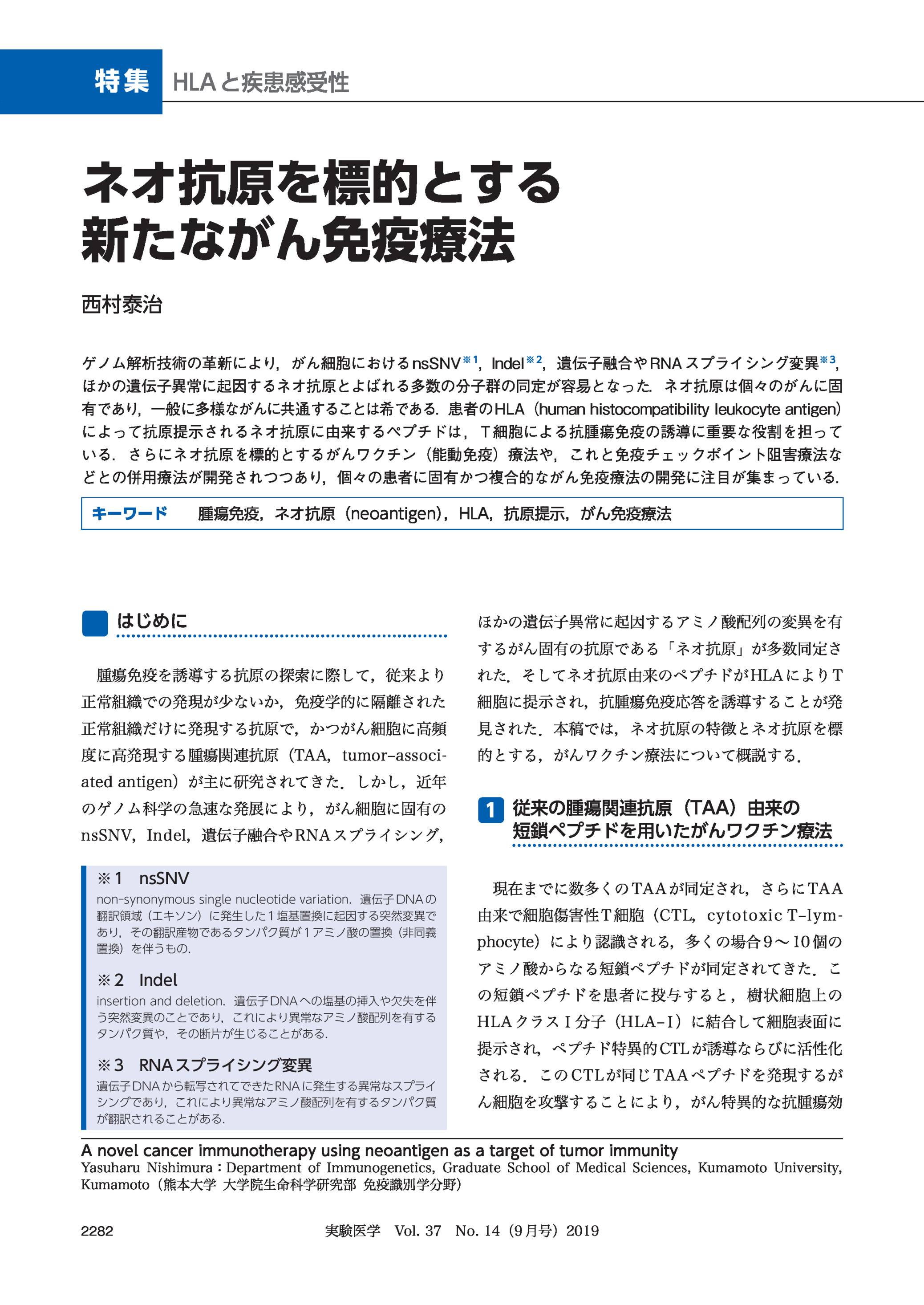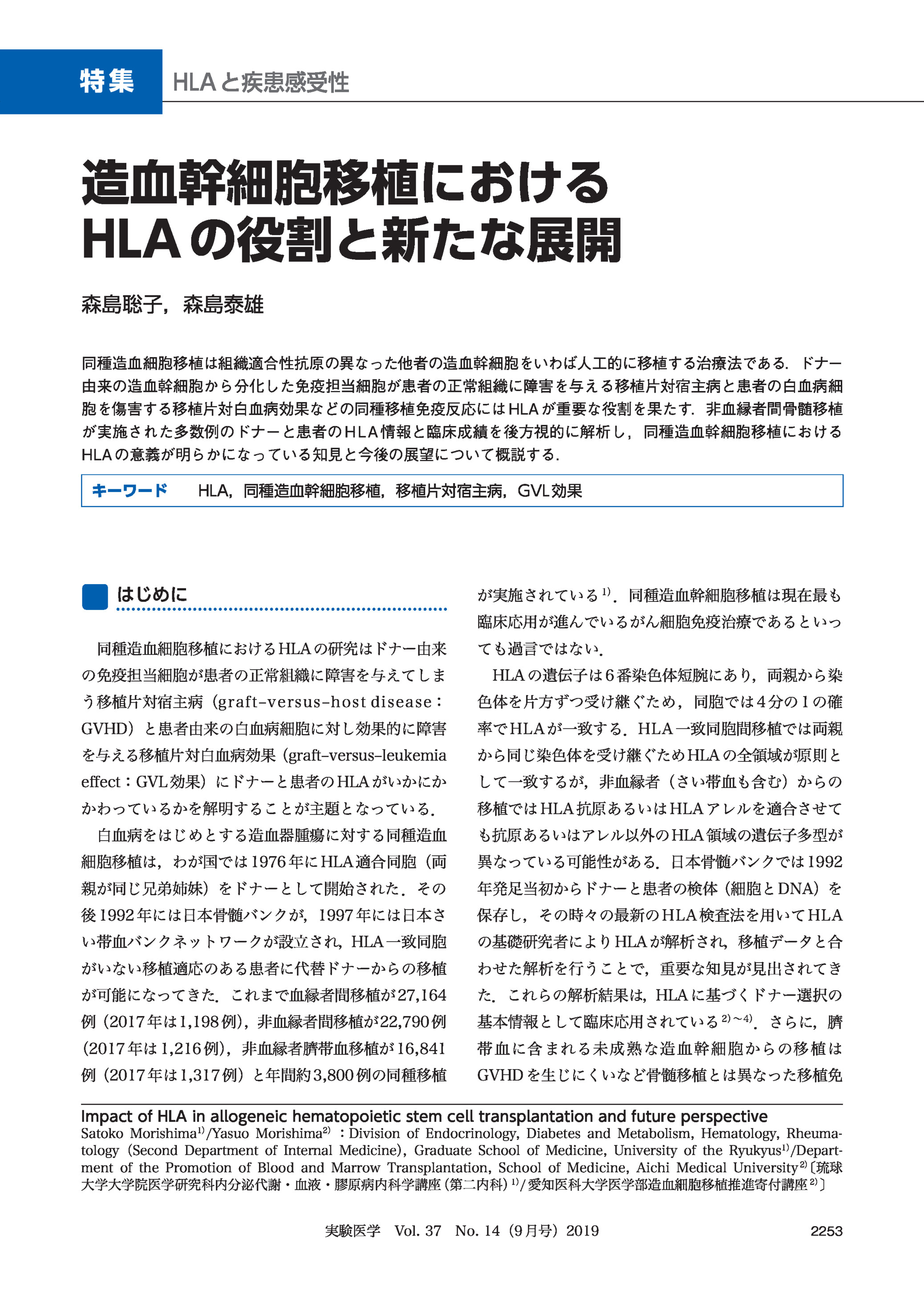 NGSを利用したHLAゲノム・遺伝子解析への新たな展望 2019年9月号 特集1