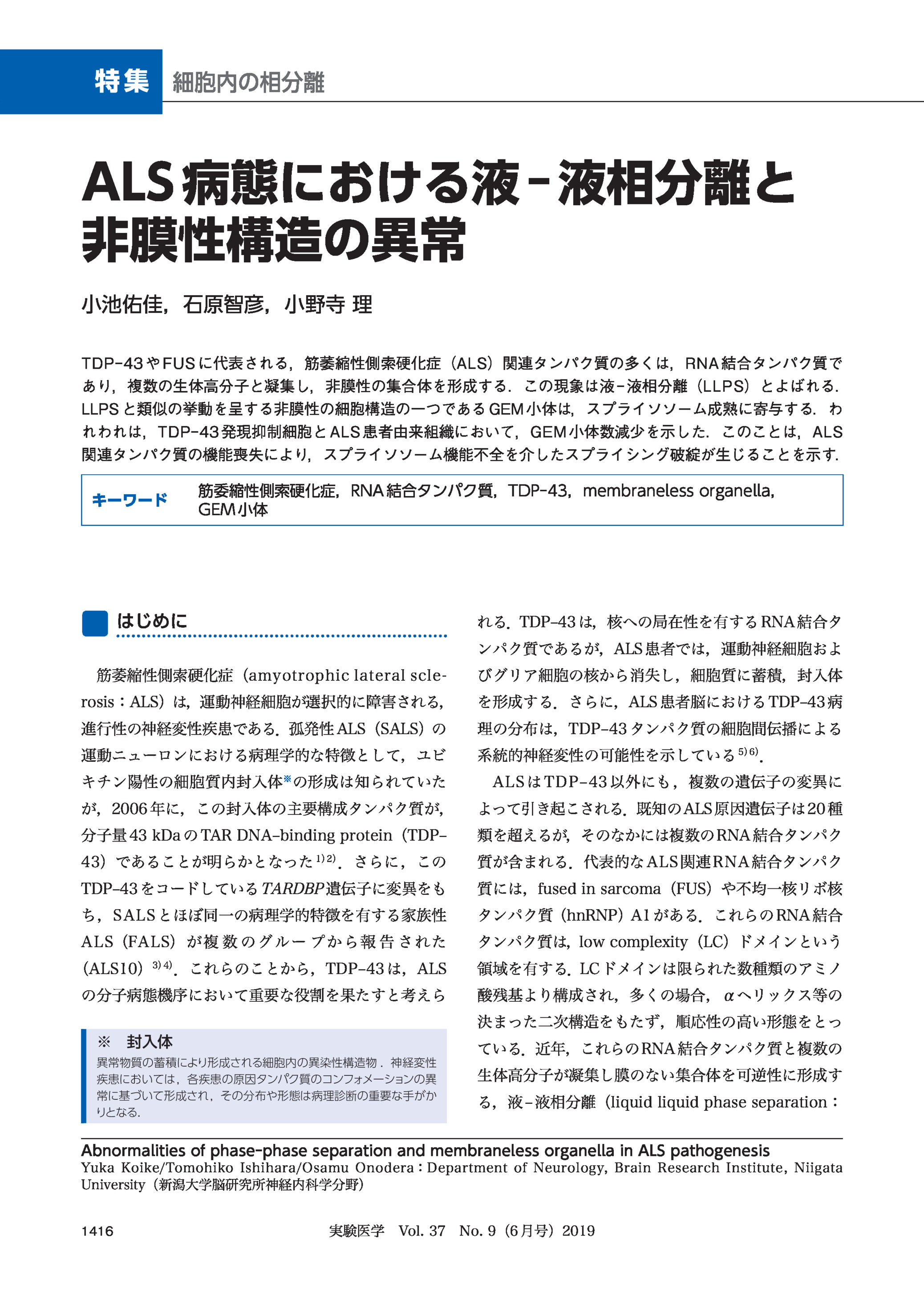 生殖顆粒はRNAとタンパク質から構築される膜をもたない細胞内構造体の一種であり,生殖細胞系列におけるmRNA代謝制御に寄与していると考えられている.線虫の生殖顆粒(P顆粒)のライブイメージング解析からこの構造体が液滴様の挙動を示すことが明らかとなった.この発見が端緒となり,「液-液相分離」が細胞内の多様な非膜性構造体の形成を引き起こす新しい共通原理として注目を集めている.