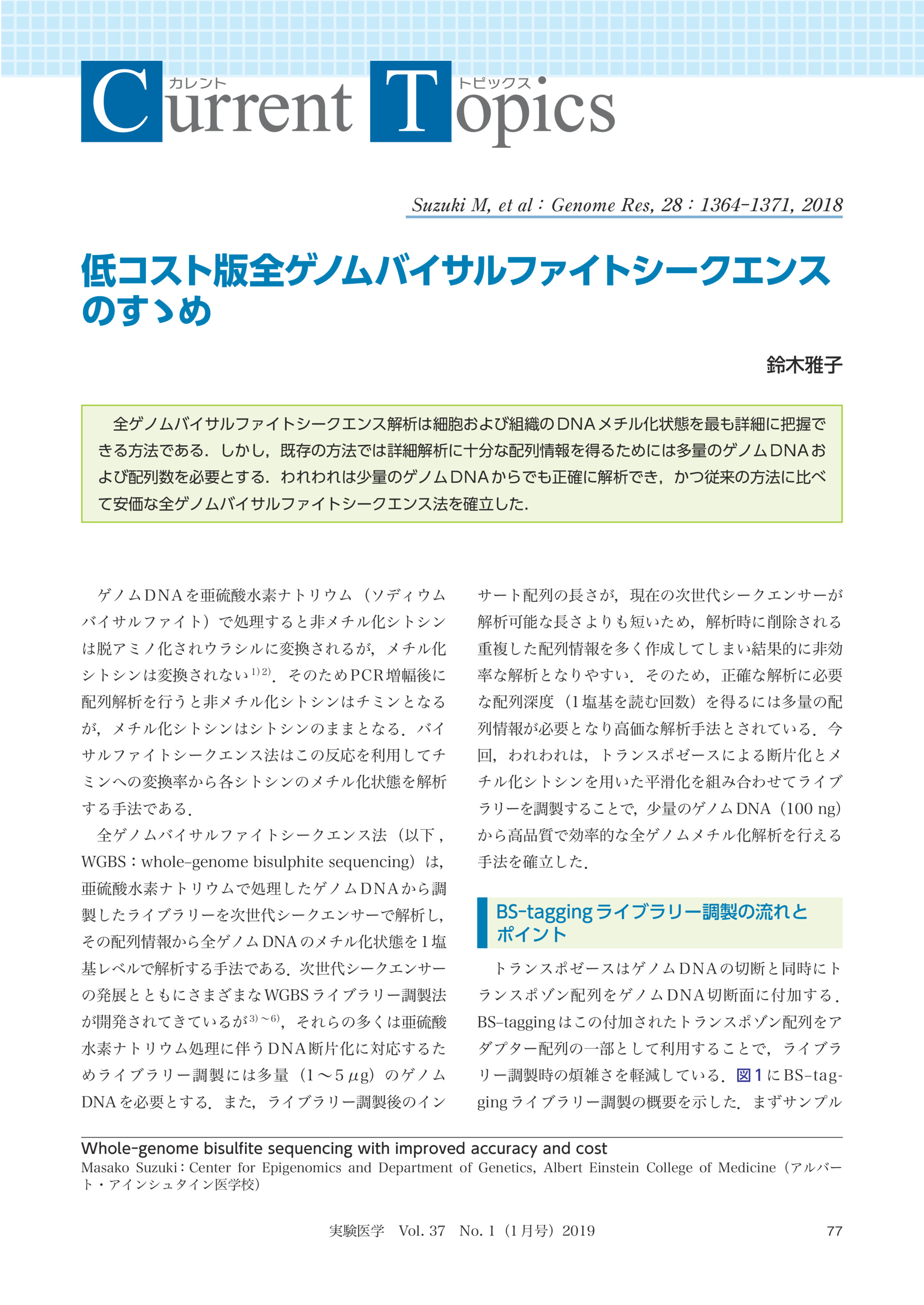 低コスト版全ゲノムバイサルファイトシークエンスのすゝめ 2019年1月号 トピックス