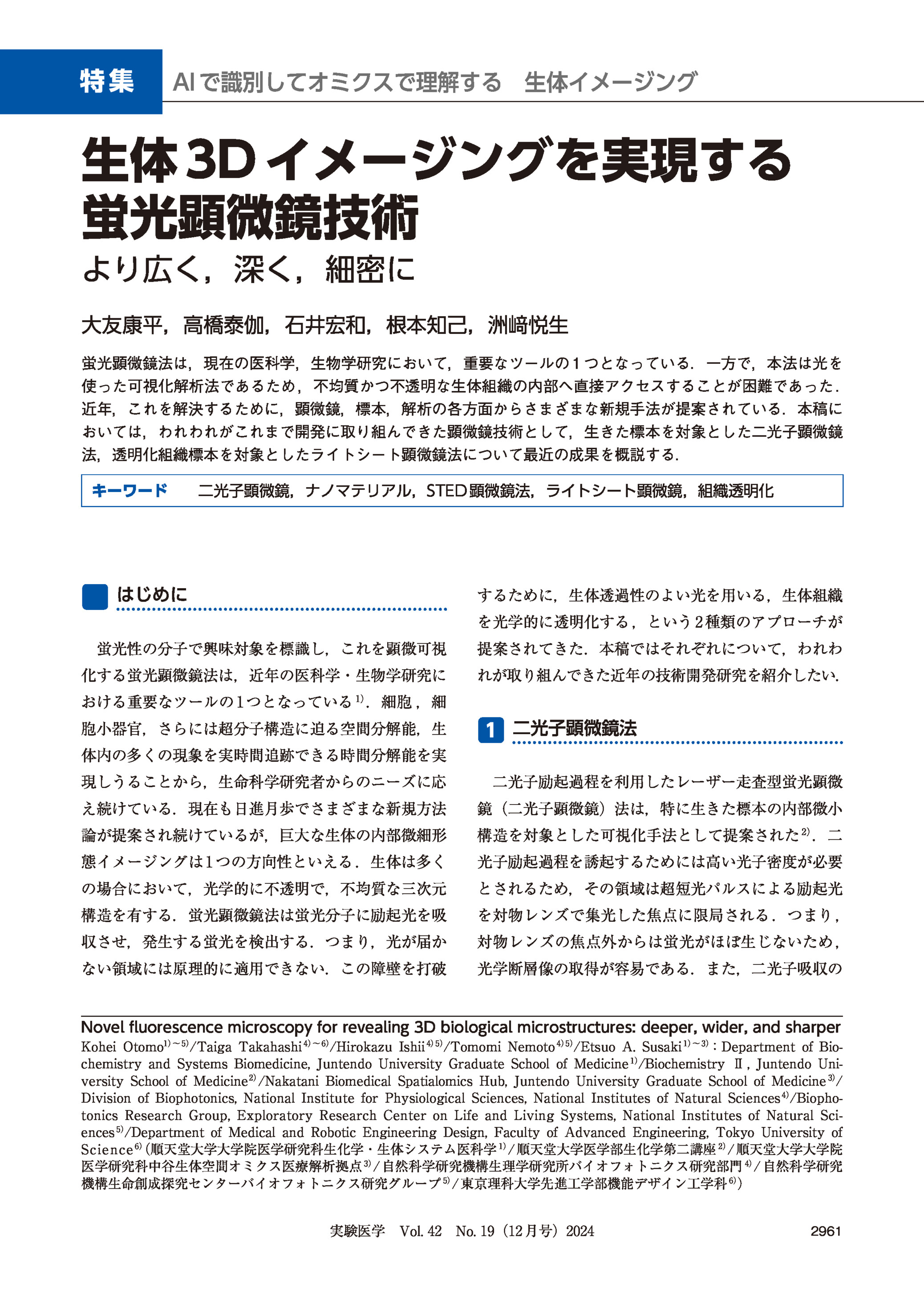 生体3Dイメージングを実現する蛍光顕微鏡技術:より広く,深く,細密に 2024年12月号 特集1