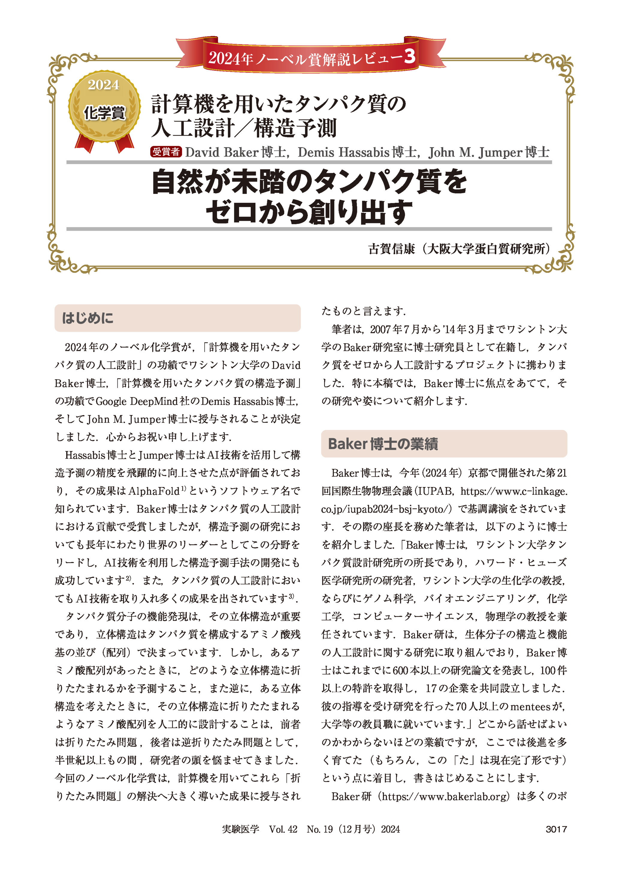 自然が未踏のタンパク質をゼロから創り出す 2024年12月号 賞解説レビュー