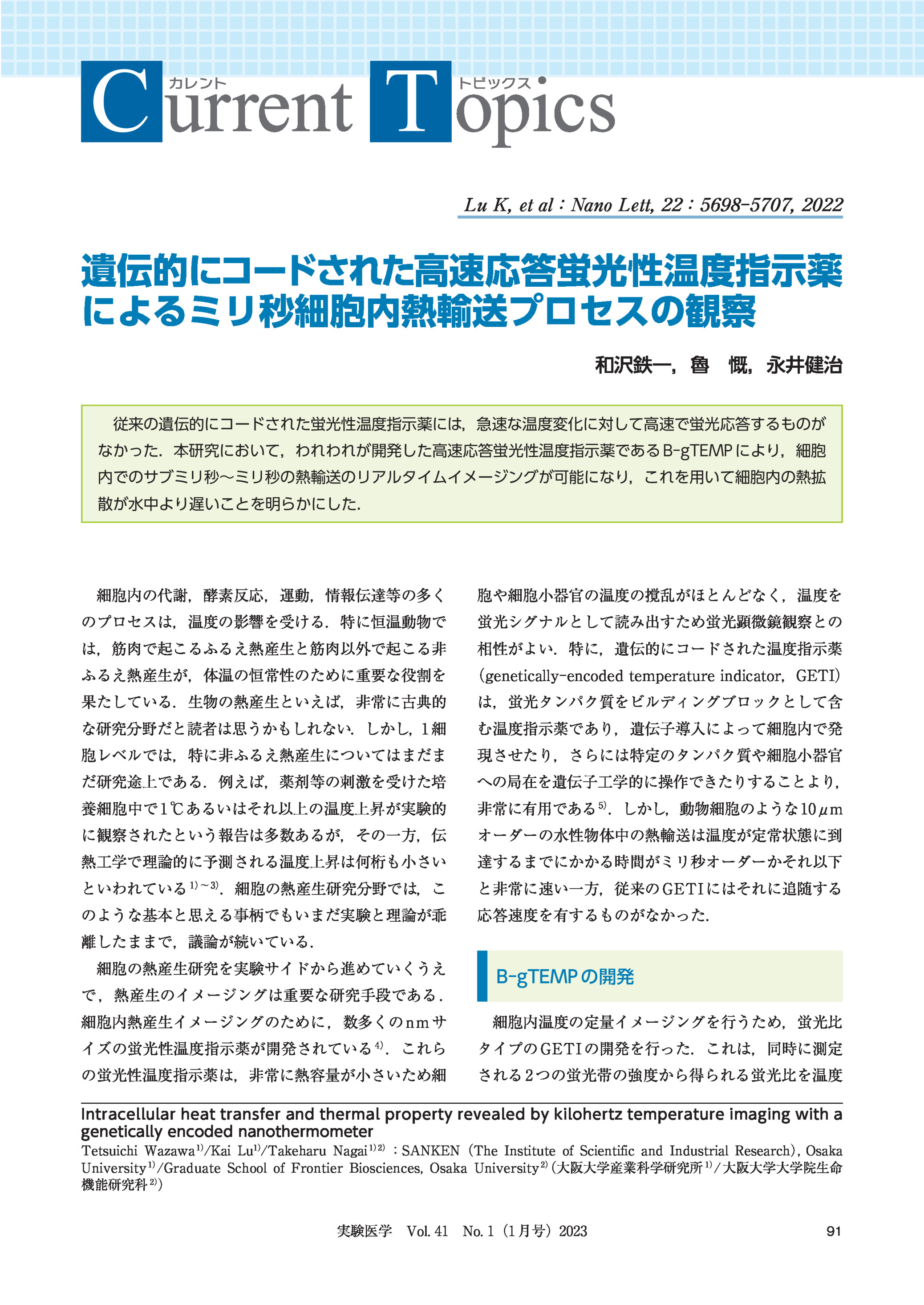 遺伝的にコードされた高速応答蛍光性温度指示薬によるミリ秒細胞内熱輸送プロセスの観察 2023年1月号 トピックス