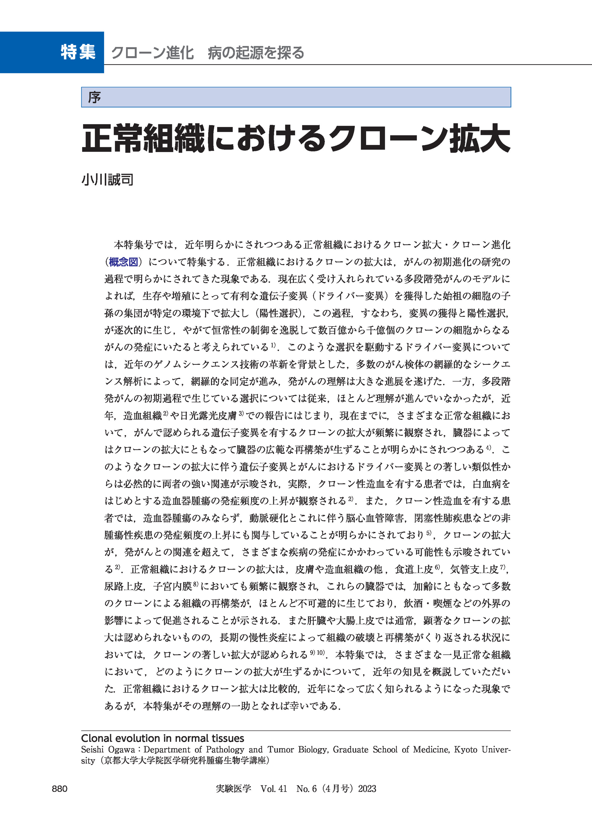 造血細胞のクローン性拡大(クローン性造血)は,加齢,炎症,抗がん剤暴露,遺伝因子などさまざまな因子によって発生する.遺伝子変異を有する造血細胞とその他の組織が生体内で炎症制御を通じてクロストークをおこなう結果,クローン性造血は造血器腫瘍のみならずその他のがん,心血管障害,腎疾患,呼吸器疾患,など多くの病態の発生と相関することが知られている.さらに,いくつかの疾患については,クローン性造血と後続疾患の間に因果関係がみられる.