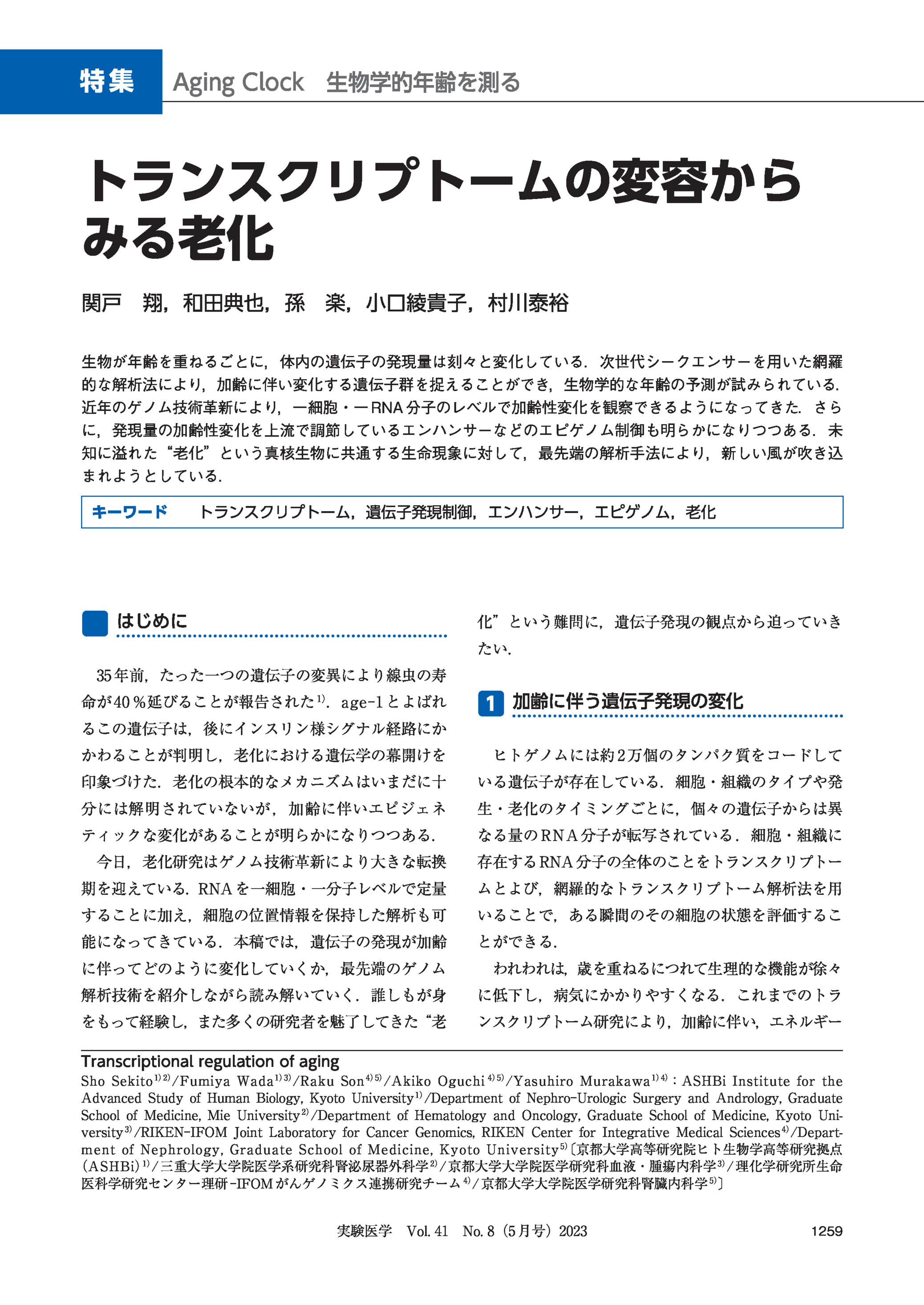 エピジェネティッククロックの発展と今後の展望 2023年5月号 特集1