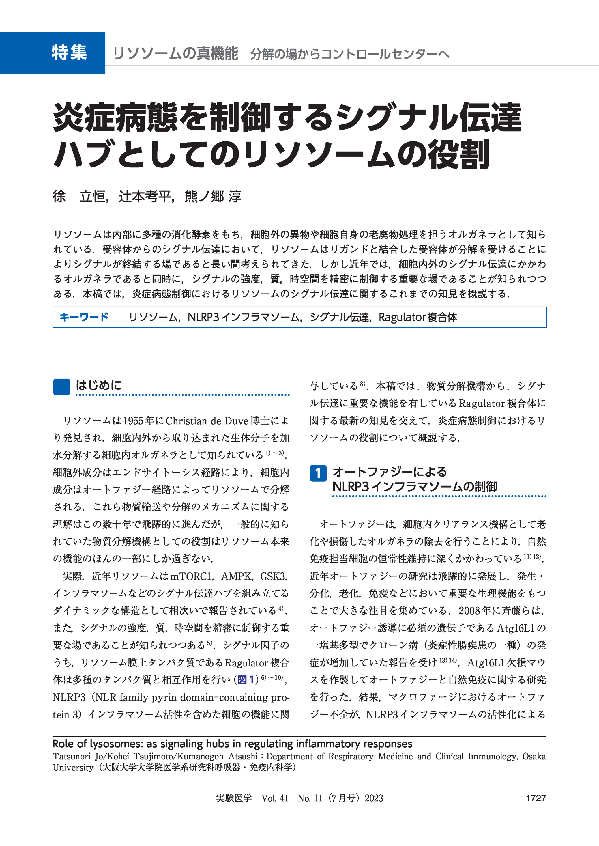 リソソーム損傷応答とその生理学的意義 2023年7月号 特集1