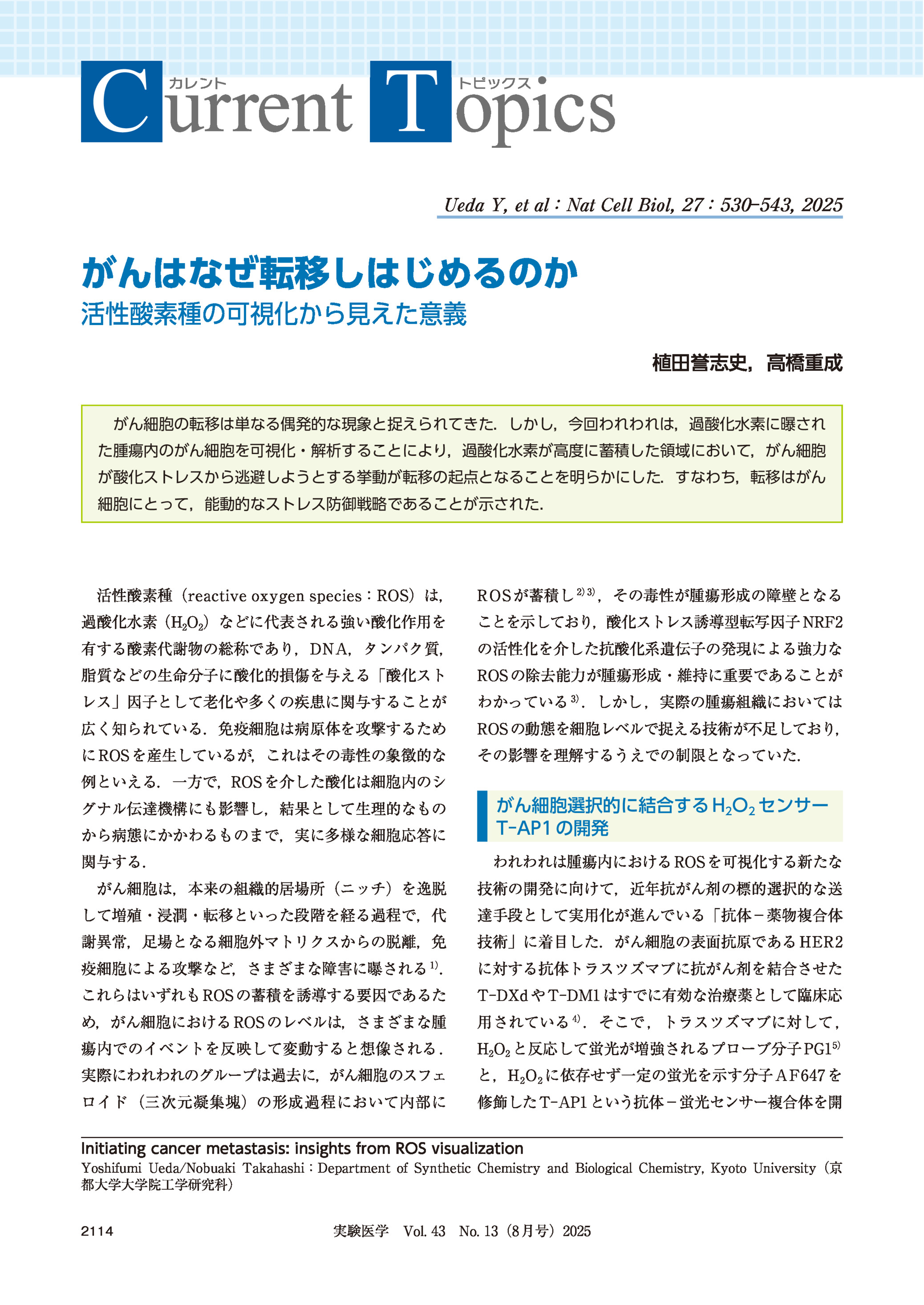 Haruhito Totani1)2)/Takayoshi Matsumura1)3)/Toshio Suda1)4):Cancer Science Institute of Singapore(CSI),National University of Singapore(NUS)1)/Albert Einstein College of Medicine2)/Center for Molecular Medicine, Jichi Medical University3)/Peking Union Medical College4)〔シンガポール国立大学がん科学研究所(前職)1)/アルバート・アインシュタイン医科大学(現職)2)/自治医科大学分子病態治療研究センター(現職)3)/北京協和医学院(現職)4)〕