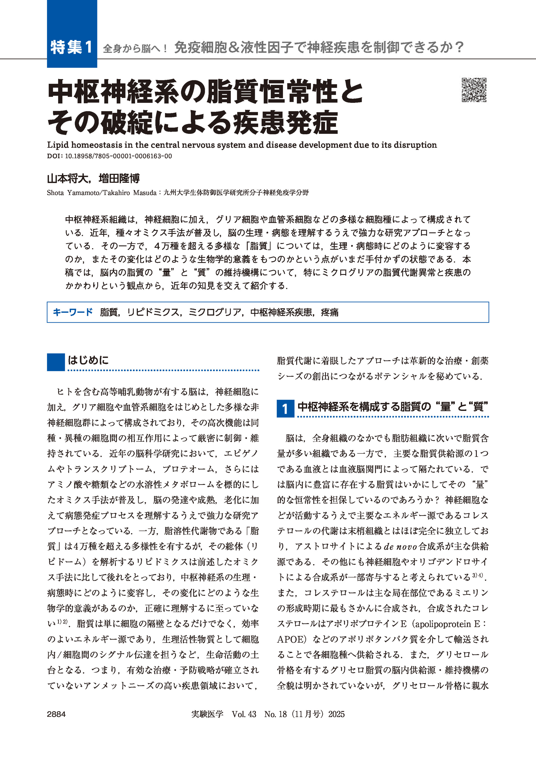 時代とともに測定技術が向上してさまざまな液性因子が続々と同定されており,疾患のメカニズムや重症度,患者の層別化や治療薬選定,および治療奏功性のバイオマーカーとなることが期待されて久しい.50万人のUK Biobankの大規模な血漿プロテオミクスにより,臓器年齢から推定された年齢ギャップに基づいて疾患発症や死亡リスクが見出され,また髄液プロテオミクスとの連携により加齢や認知機能不全のバイオマーカーが新たに同定された.なかでも脳と免疫系は加齢進行の主な責任器官であり,脳関門の機能破綻が認知機能不全を惹起するというプロテオームエビデンスが明らかとなった.