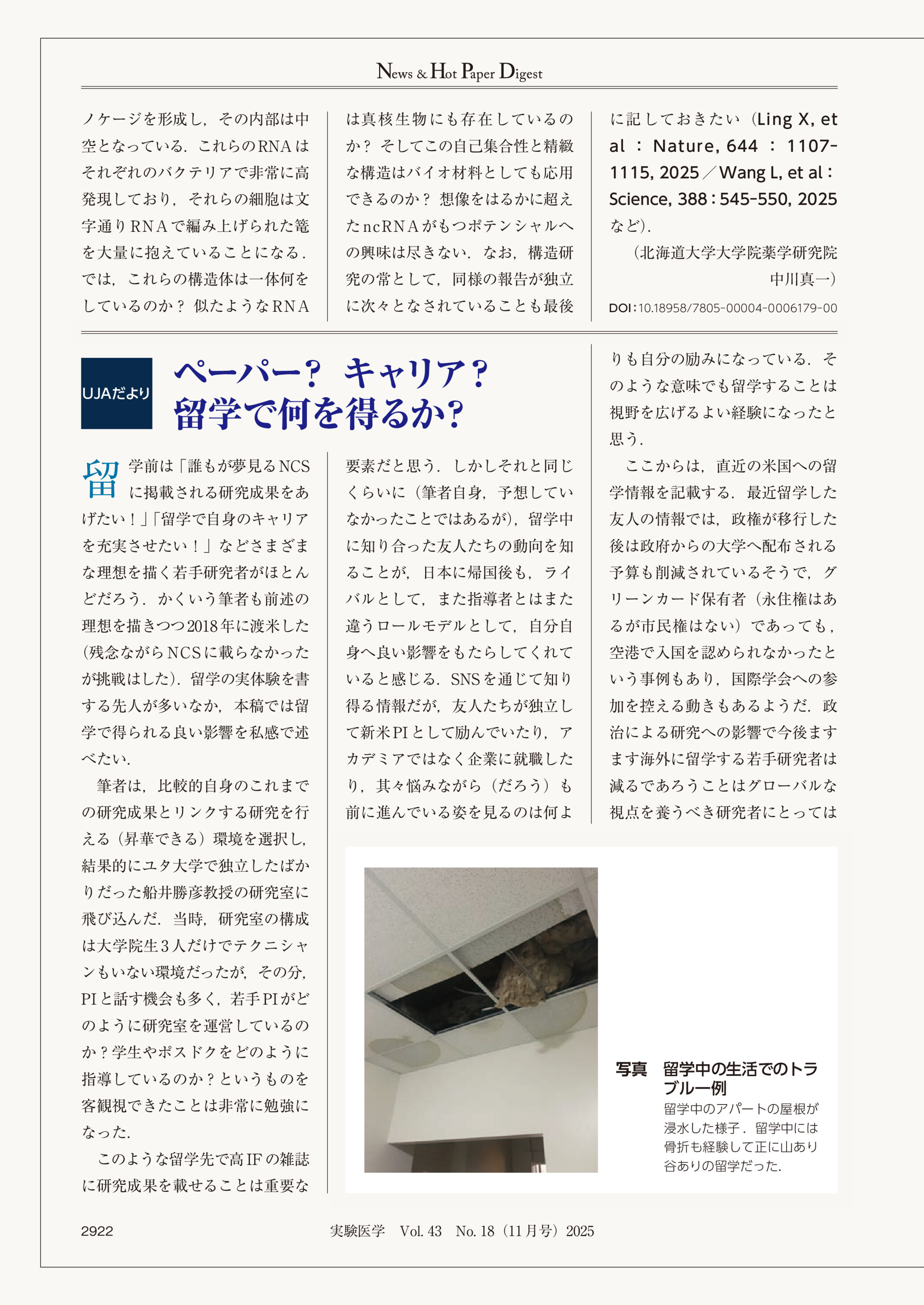 【スマホで読める実験医学】エアコン代ケチってたら,アメリカのラボで働いていた話