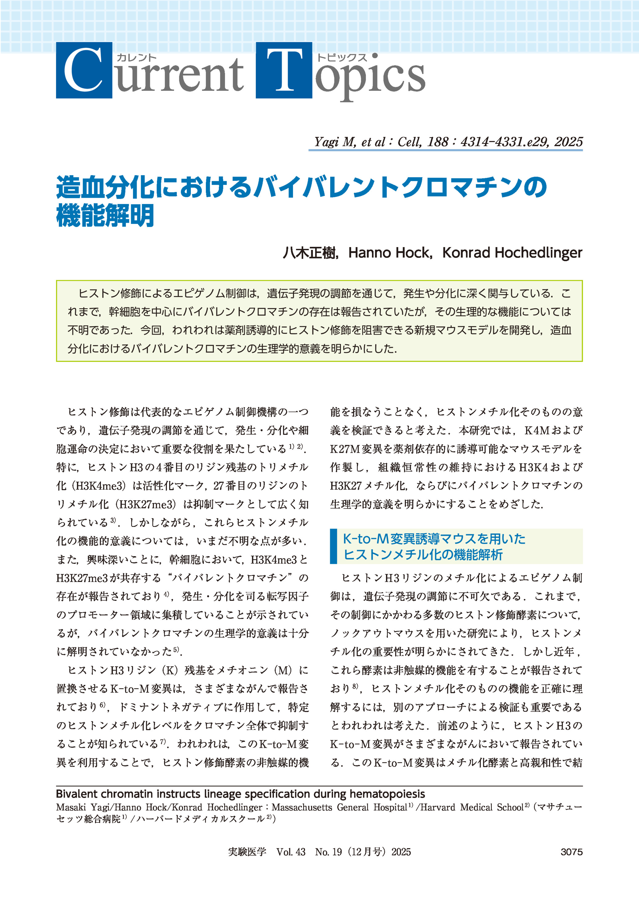 造血分化におけるバイバレントクロマチンの機能解明 2025年12月号 トピックス