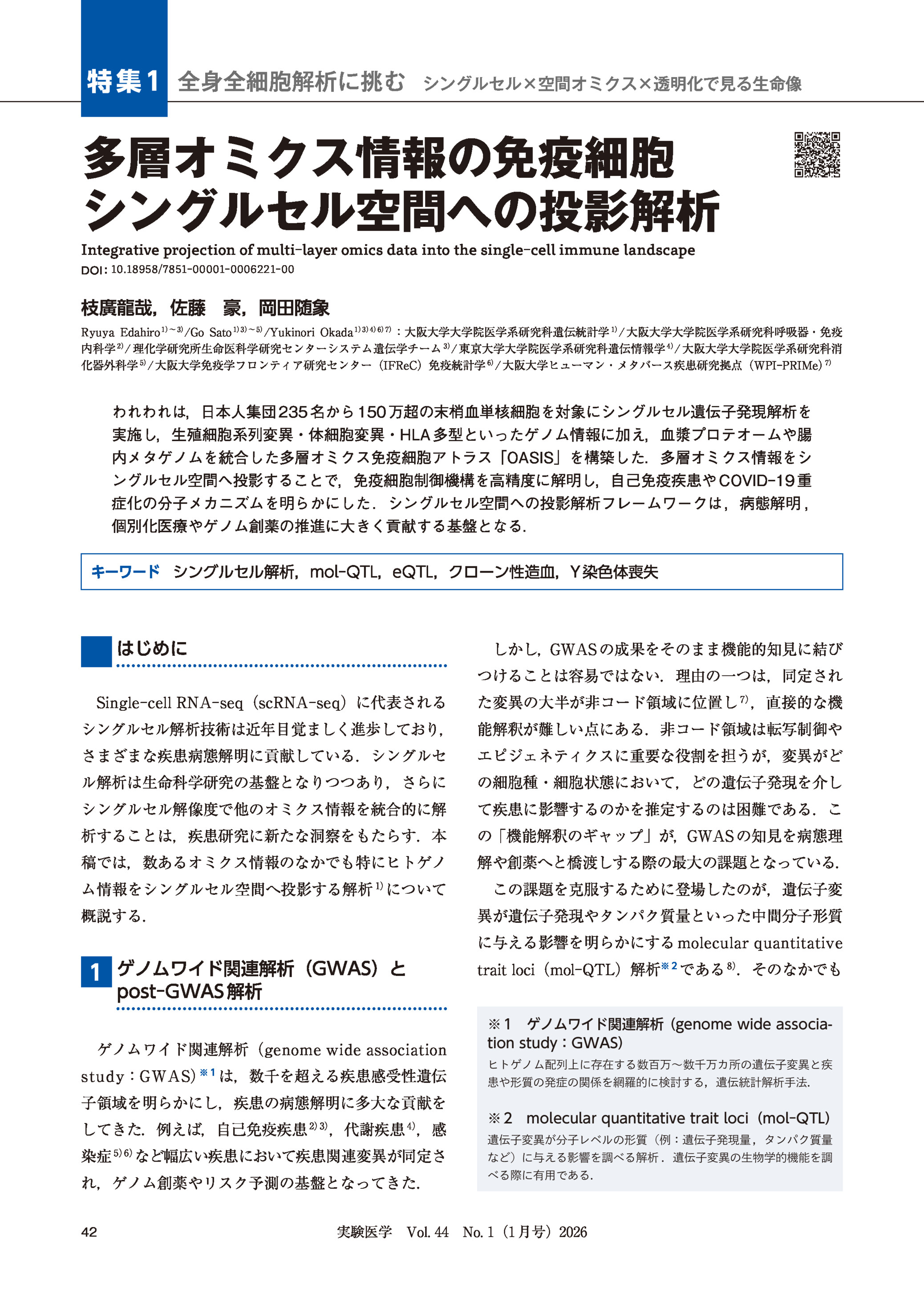 多層オミクス情報の免疫細胞シングルセル空間への投影解析 2026年01月号 特集1