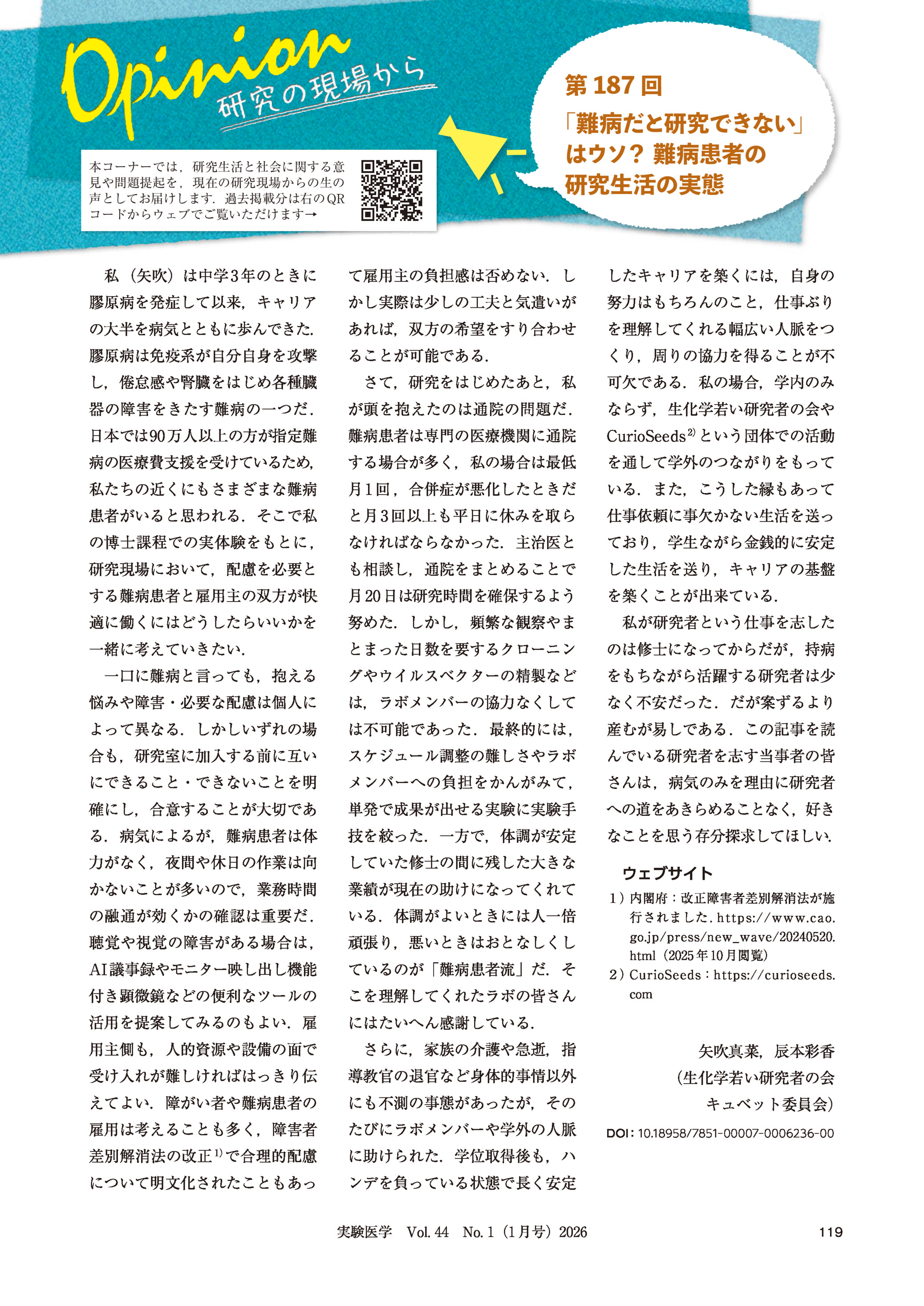 「難病だと研究できない」はウソ? 難病患者の研究生活の実態 2026年01月号 Opinion