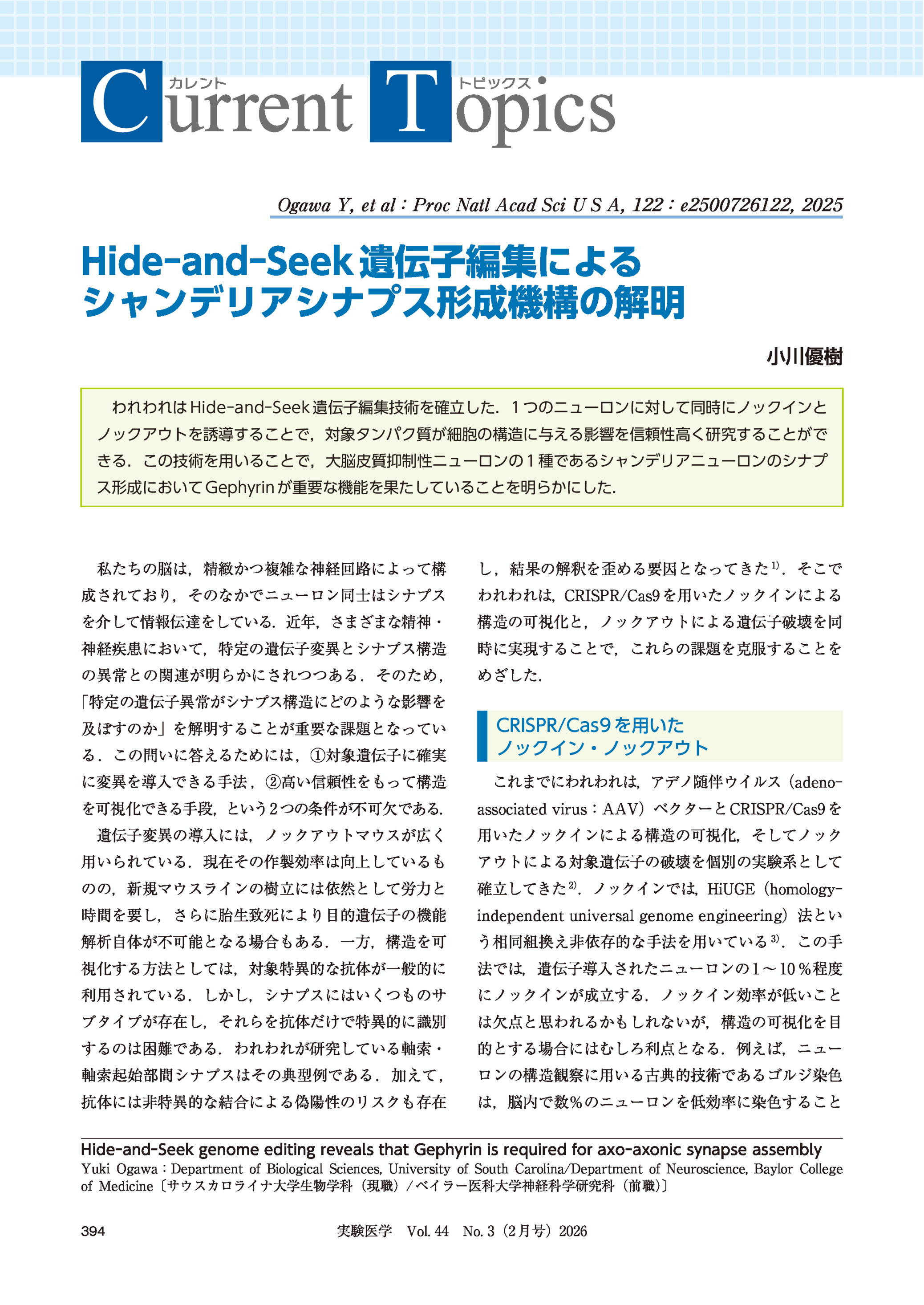 Hide-and-Seek遺伝子編集によるシャンデリアシナプス形成機構の解明 2026年02月号 トピックス