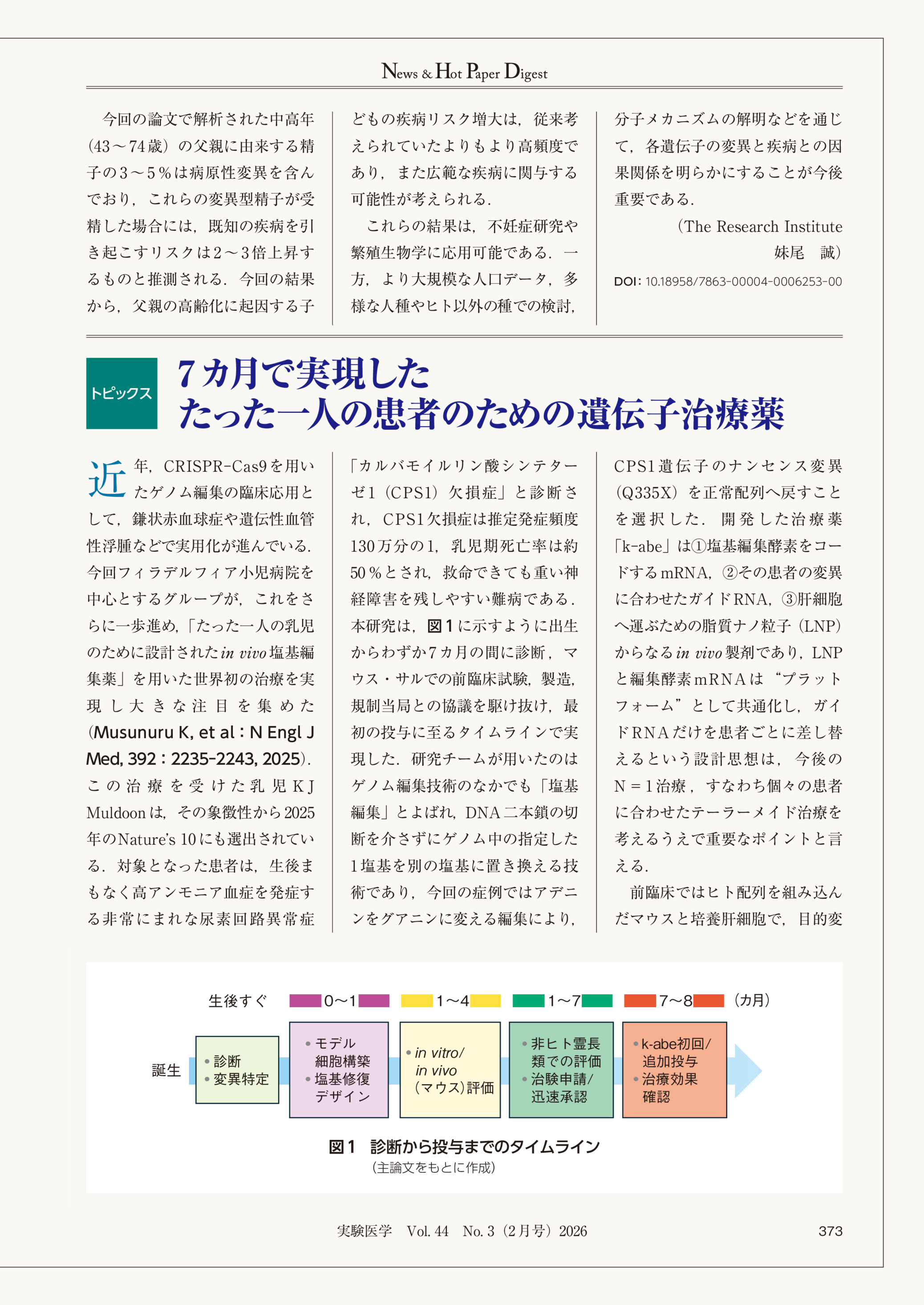 7カ月で実現したたった一人の患者のための遺伝子治療薬 2026年02月号 NHPD