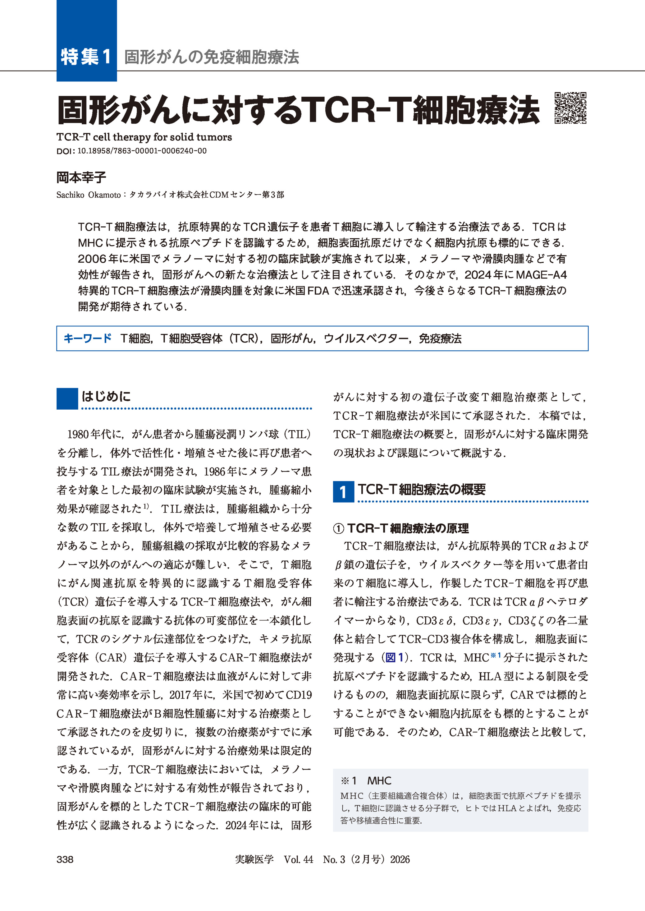 固形がんに対するTCR-T細胞療法 2026年02月号 特集1