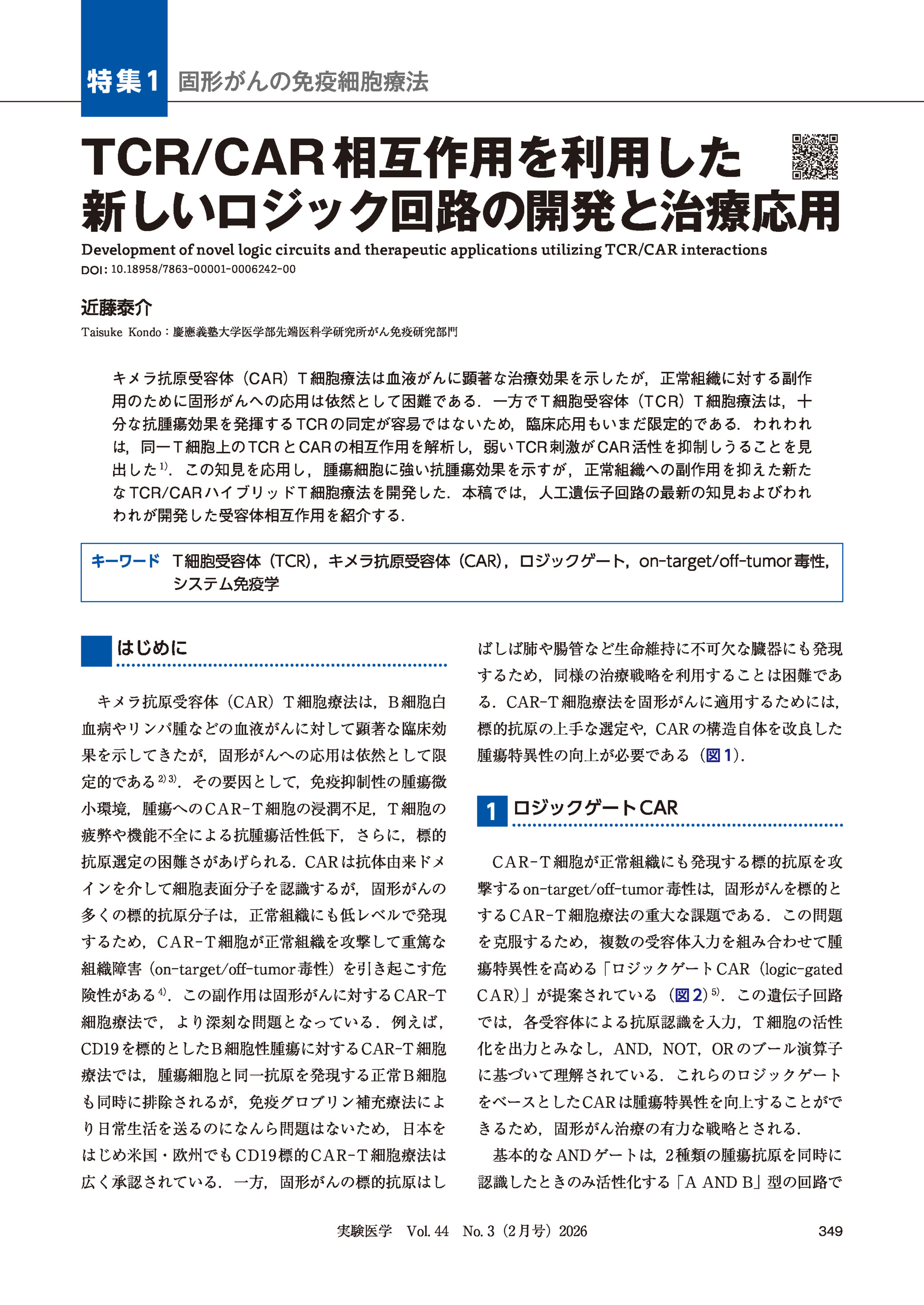 TCR/CAR相互作用を利用した新しいロジック回路の開発と治療応用 2026年02月号 特集1