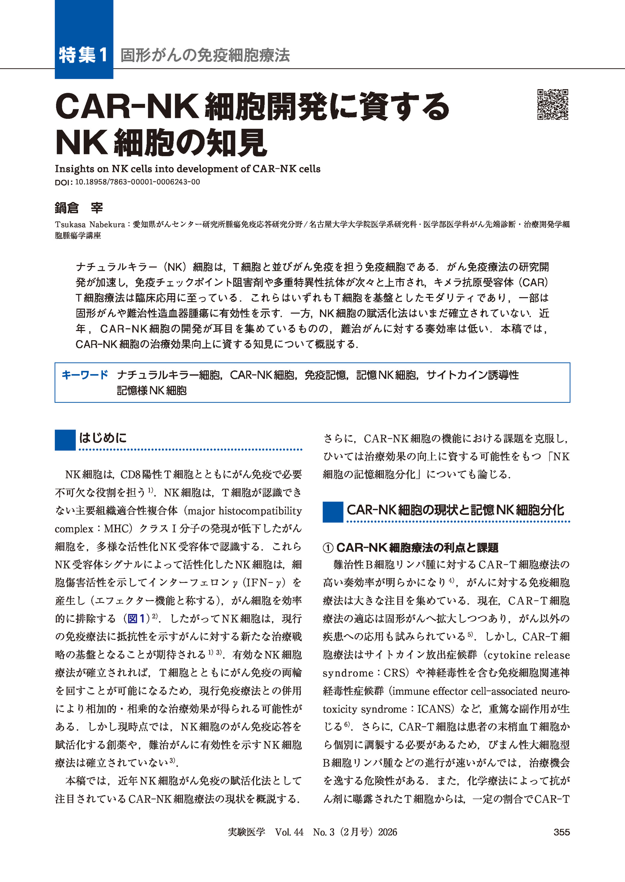 CAR-NK細胞開発に資するNK細胞の知見 2026年02月号 特集1