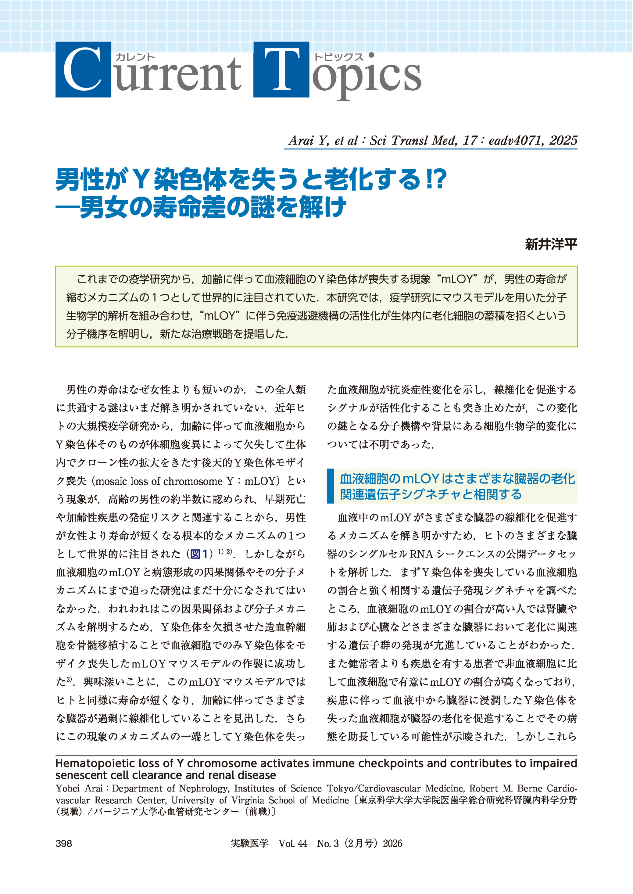 男性がY染色体を失うと老化する!?―男女の寿命差の謎を解け 2026年02月号 トピックス