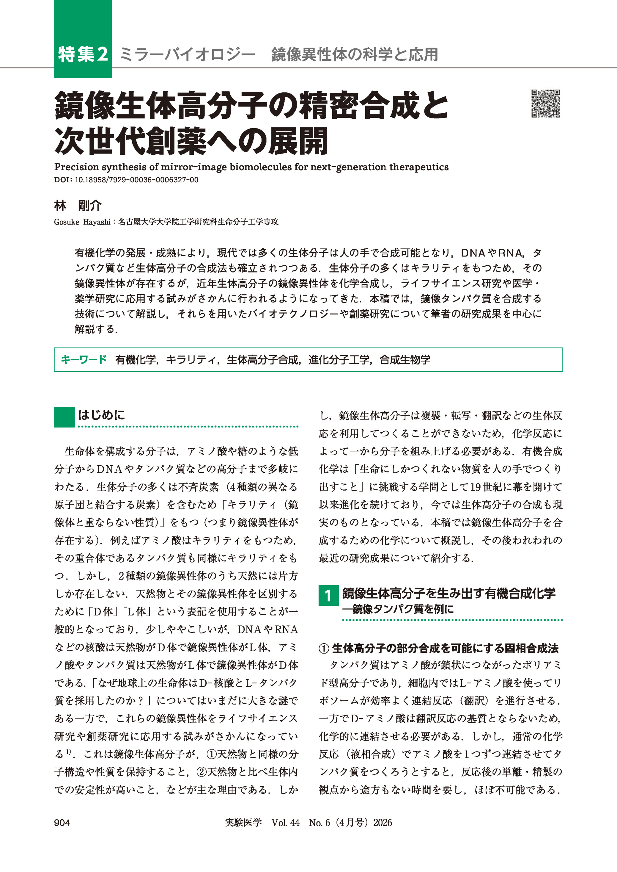 鏡像生体高分子の精密合成と次世代創薬への展開 2026年04月号 特集2