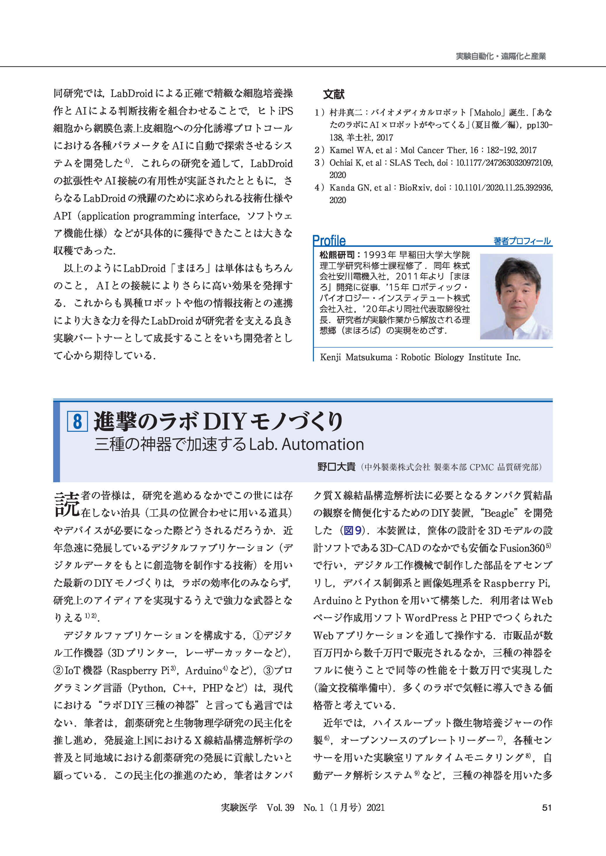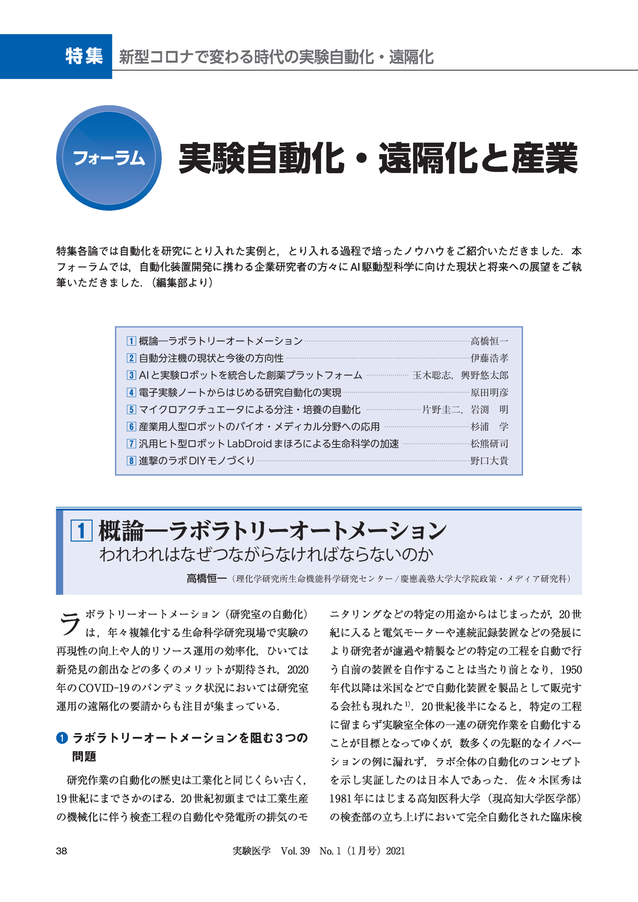 特集各論では自動化を研究にとり入れた実例と,とり入れる過程で培ったノウハウをご紹介いただきました.本フォーラムでは,自動化装置開発に携わる企業研究者の方々に AI 駆動型科学に向けた現状と将来への展望をご執 筆いただきました.(編集部より)