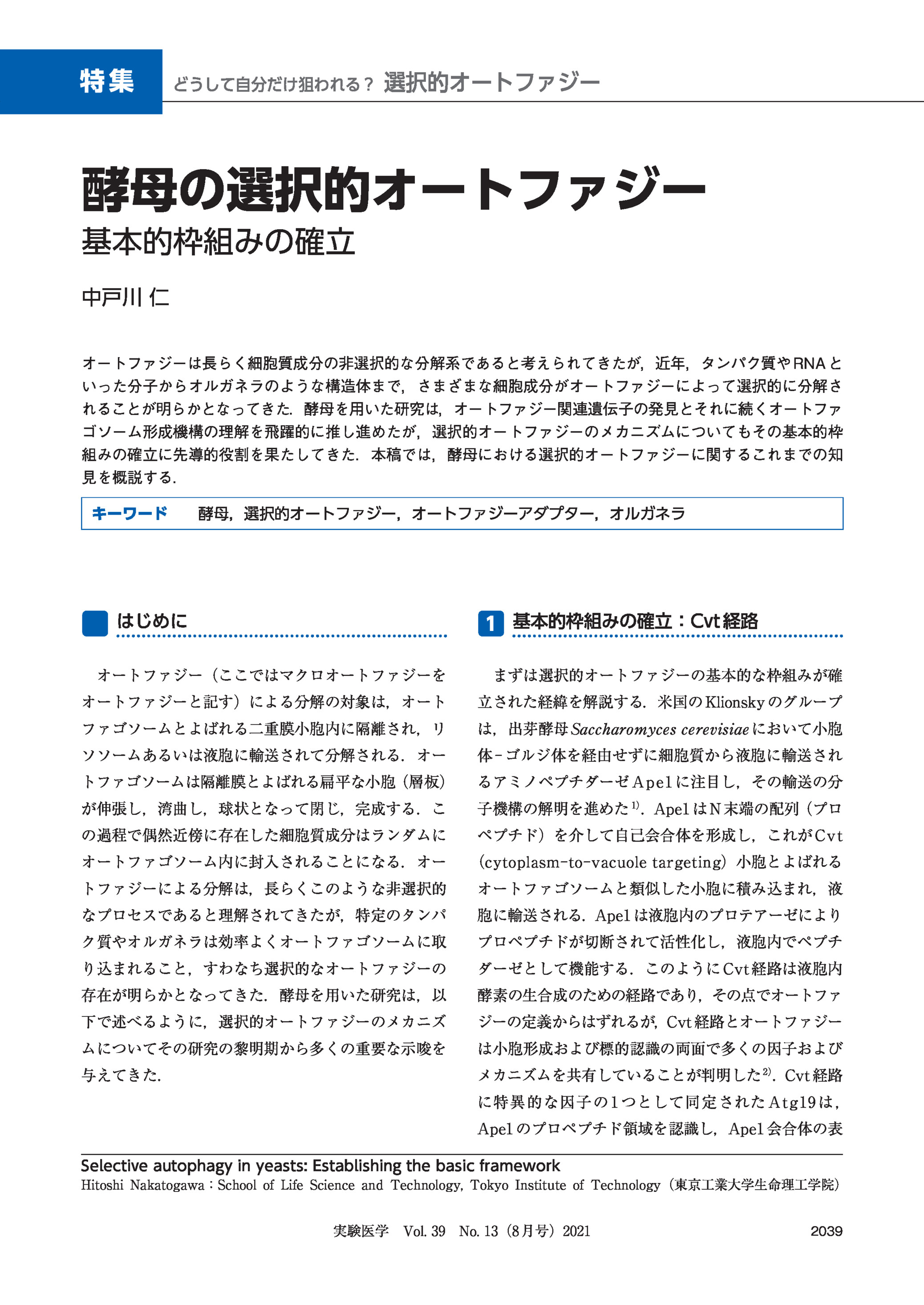 オートファジーは,がん細胞において,その高い代謝要求を満たすことで生存・増殖を促進するのみならず,損傷オルガネラ・凝集体の除去による細胞内恒常性の維持,シグナル伝達経路の制御,さらには免疫逃避にも関与することが明らかとなり,がんの治療標的として注目を集めている.一方,オートファジーは,正常細胞においては発がん抑制作用を発揮すること,またがん種・がんの進展の段階に応じて異なった役割を果たすことも多く,こうした複雑性の一部は,多様なオートファジー受容体を介した選択的オートファジーの関与によって説明可能と考えられる.本稿では,選択的オートファジーの発がん・がん細胞における働き,さらにオートファジーと腫瘍免疫とのかかわりについて概説する.