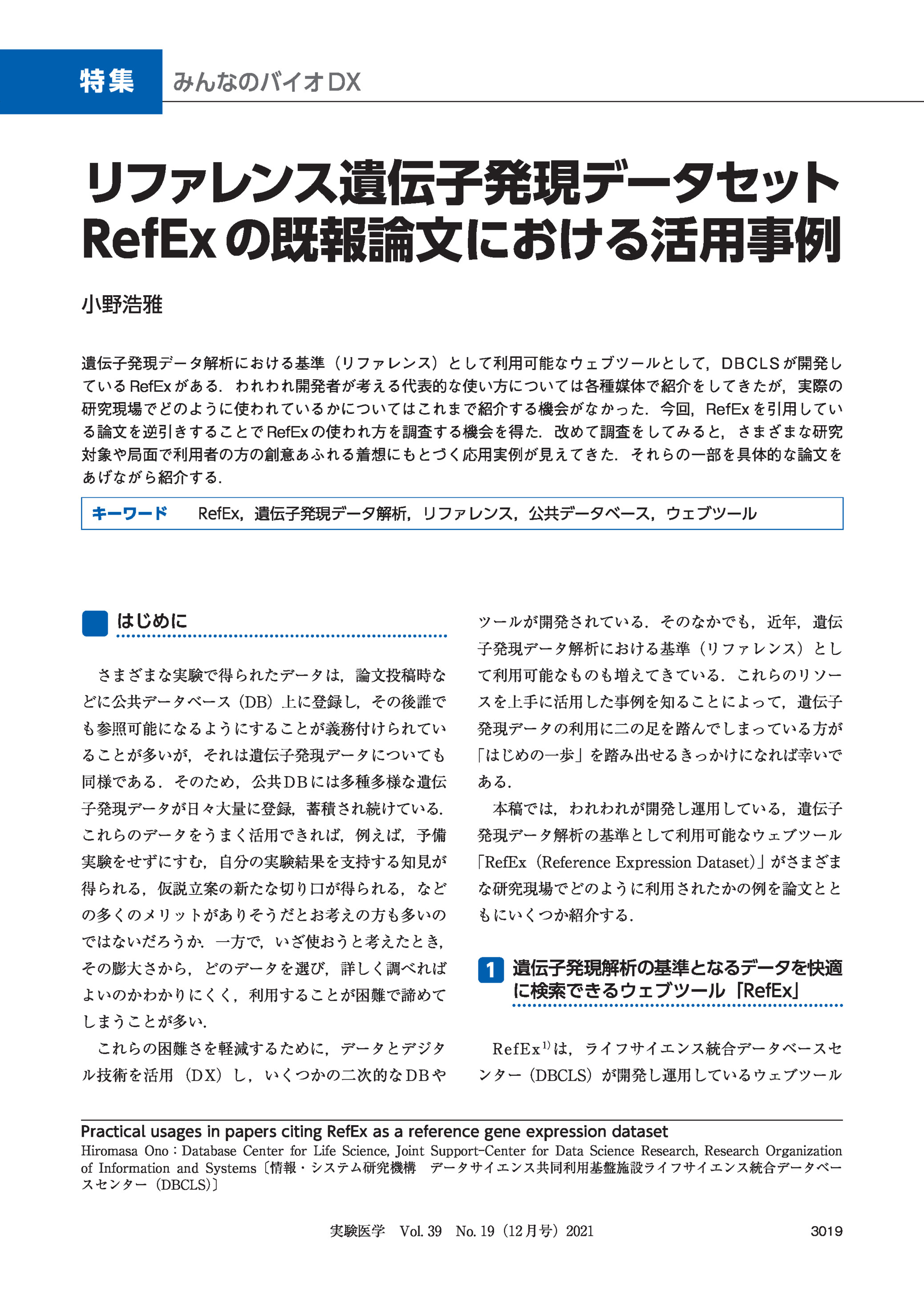 ヒトゲノムデータの利活用の実際 2021年12月号 特集1