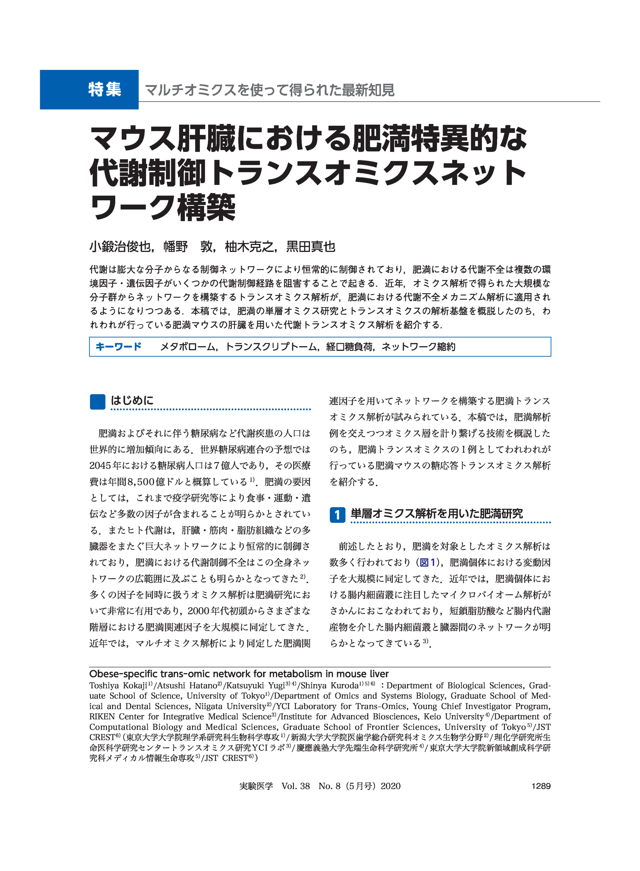 マウス肝臓における肥満特異的な代謝制御トランスオミクスネットワーク構築 2020年5月号 特集1