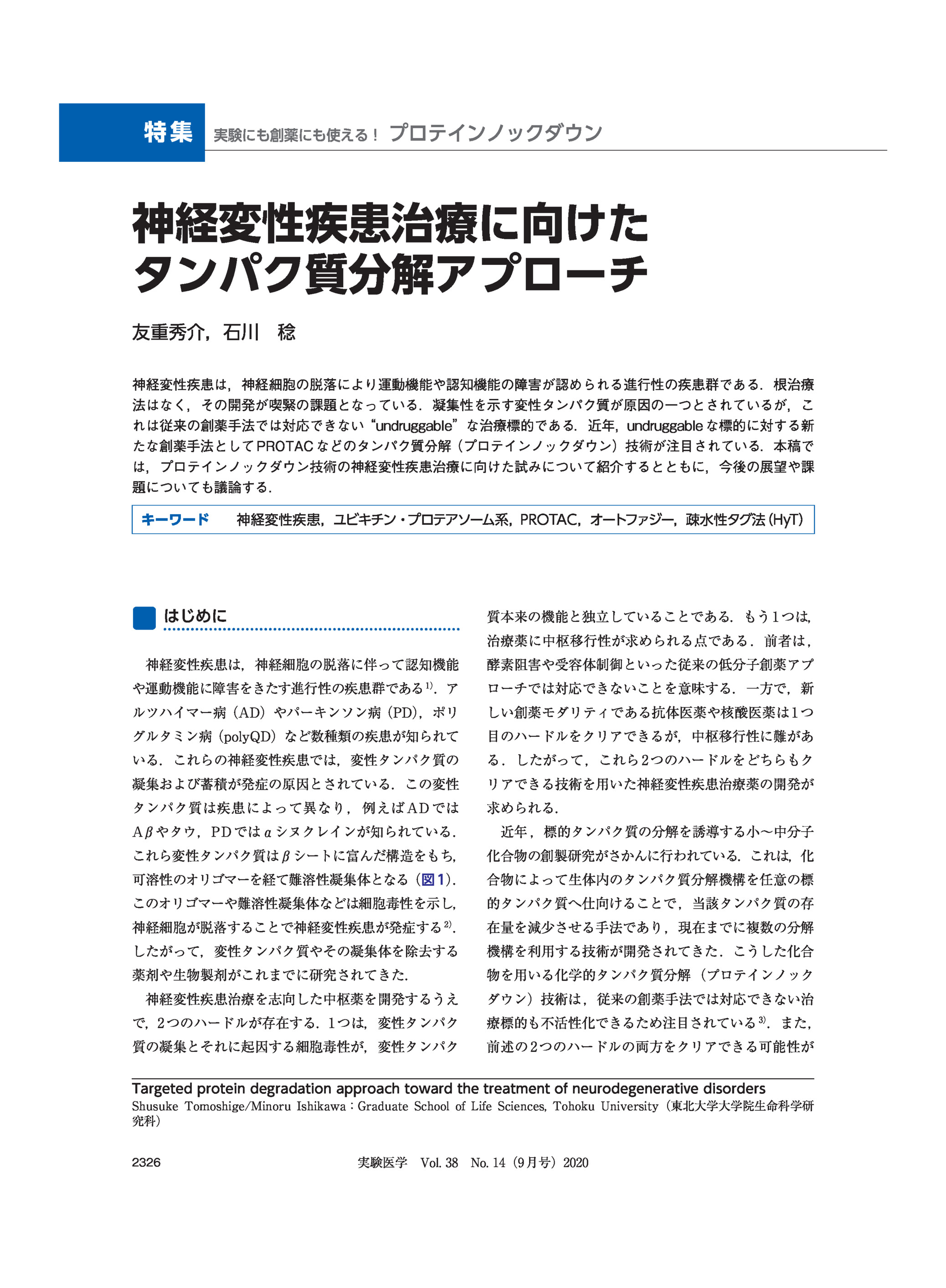 神経変性疾患治療に向けたタンパク質分解アプローチ 2020年9月号 特集1