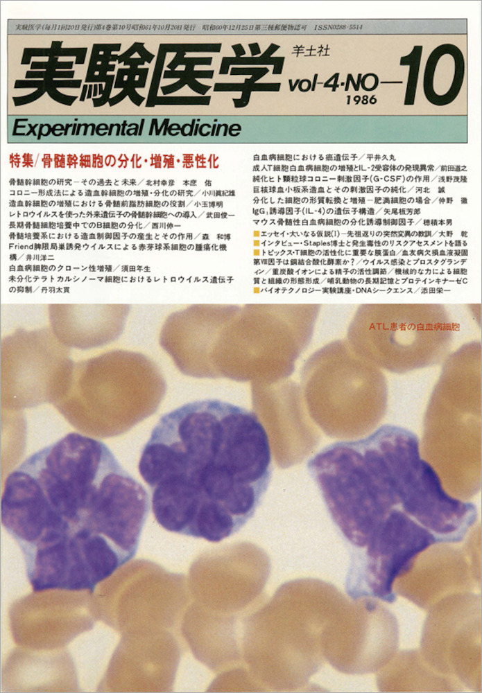 今月は「骨髄幹細胞の分化・増殖・悪性化」と題して,本庶佑先生にご企画いただきました.血液幹細胞研究は,分子生物学の発展と相俟って,今後の大きな発展が期待されます.その様な中,今回の特集は“第2回東洋紡分子生物学研修会・造血系細胞の分化と増殖シンポジウム”での発表演題をまとめたもので,若い研究者の実績を中心とした最新の研究をご紹介いたします.