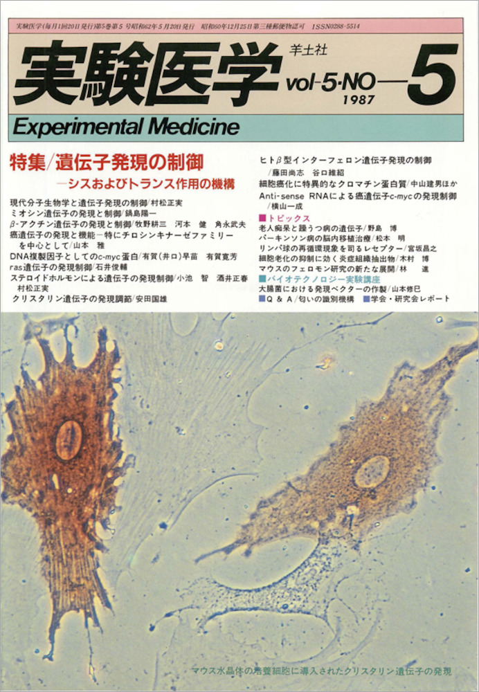 クローニング技術により,遺伝子の構造が次々と明らかにされている現在,「遺伝子発現の制御—シスおよびトランス作用の機構」と題して,遺伝子の機能および発現調節機構などの解析を中心に,最新のトピックスを特集いたしました.企画は,村松正実先生にお願いいたしました.
