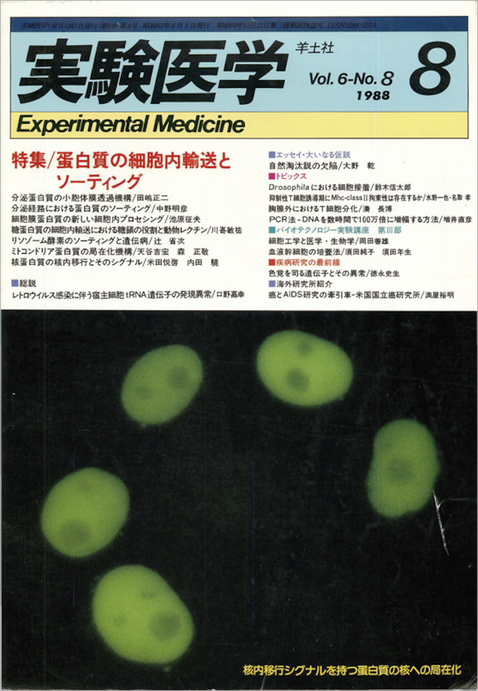 今月は「蛋白質の細胞内輸送とソーティング」と題して特集いたしました.田嶋正二先生と中野明彦先生にご企画いただき,最近のトピックスを中心にまとめていただきました.基礎的な内容ながら細胞内の蛋白質の動きとその仕組みがわかり,多くの読者の皆様に興味をもっていただける特集にまとめました.