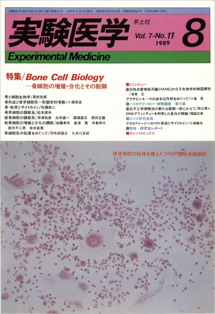 今月号は尾形悦郎先生にご企画いただき,「Bone Cell Biology—骨細胞の増殖・分化とその制御」と題して特集いたしました.破骨細胞も造骨細胞も単一の機能状態にあるものではなく,両細胞系が微妙な調和を持って活動する調節系があることが明らかとなり,各細胞系のそれぞれの分化レベルにおける多彩な反応も明らかにされつつあります.