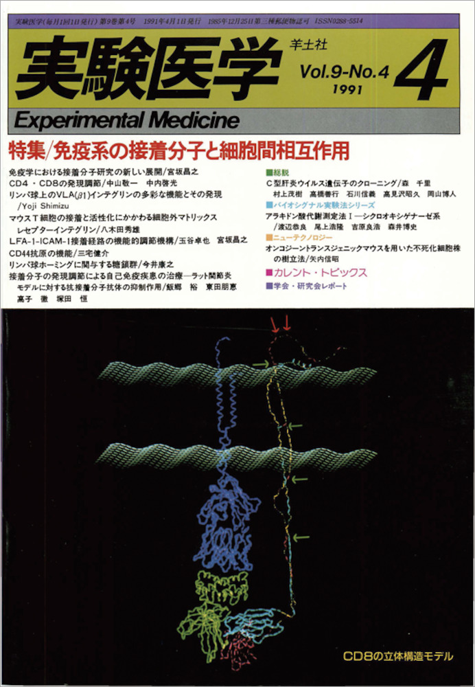 目覚ましい進展をみせる免疫学の研究において,近年,細胞間の接着を司る接着分子の役割がクローズアップされています.そこで今回は,臨床研の宮坂昌之先生にご企画いただいて,現在までに明らかにされている接着分子群とその構造・機能,さらに細胞間相互作用に関与するメカニズムや接着分子の発現調節機構の研究など,最新情報を交えて特集いたしました.
