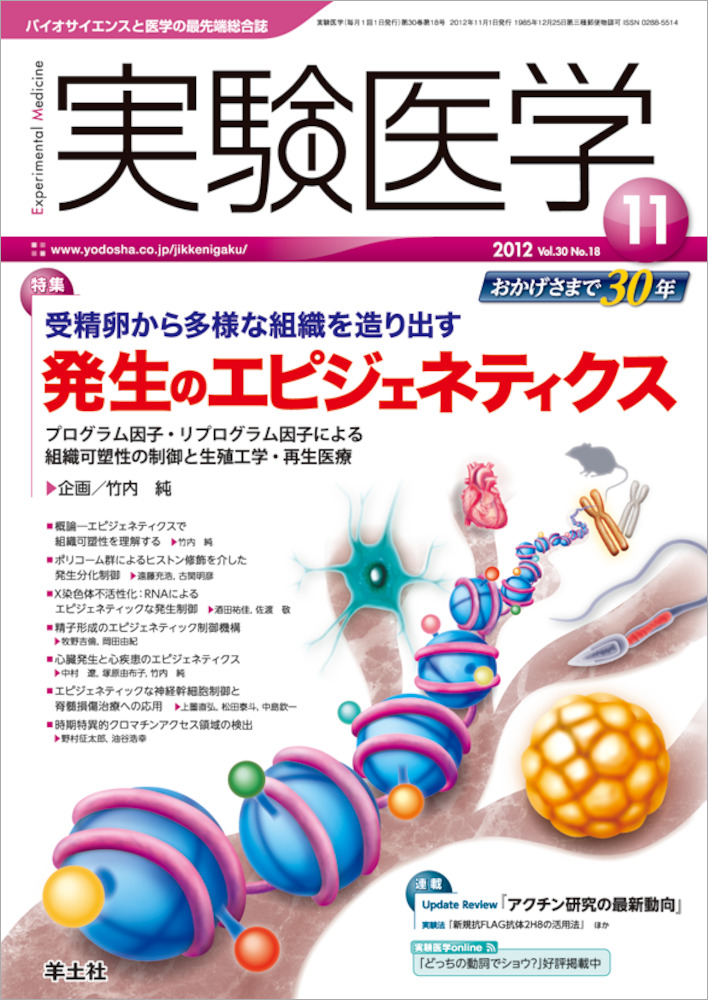 受精し1つの命が生まれ,組込まれた遺伝プログラムに従って形作りを行っていくうえで,組織特異的に発現する転写因子群を中心としたgeneticなアプローチのみでは説明がつかない現象が明らかになってきた.それは,器官形成後,各々の臓器は環境変化に適応(adaptation)すべく機能を変化させ,再構築(remodel)すべく形も変化させ,双方をくり返して生命活動の維持をしているからである.また逆に,発生過程においても成体組織においても外界のシグナルや転写因子の作用に簡単に応答しないようなシステムも存在する.このような能力を高める因子がエピジェネティック因子群である.本特集では,このような疑問をエピジェネティック因子に着目することから理解をめざす研究を紹介したい.