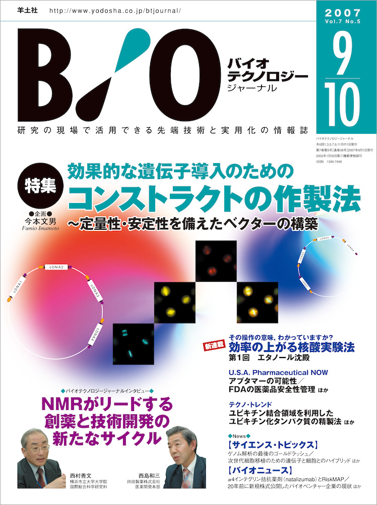 - 【本書名】バイオテクノロジージャーナル:効果的な遺伝子導入のためのコンストラクトの作製法〜定量性・安定性を備えたベクターの構築